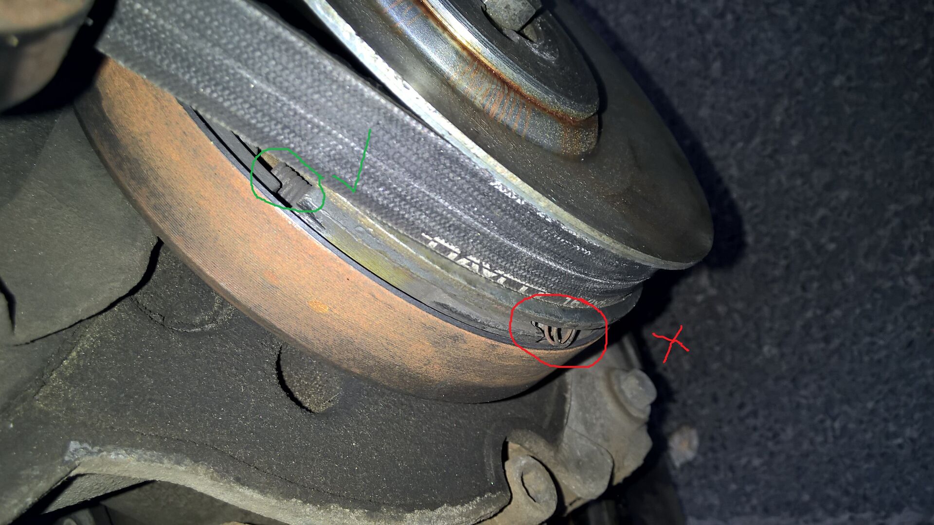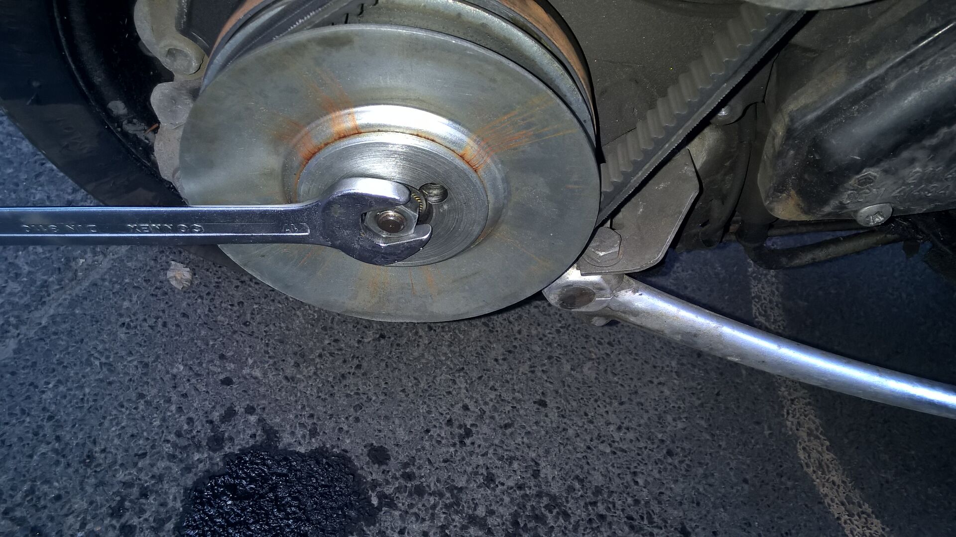 Danke, hab das hinbekommen indem ich den Riemen mit ner Zange blockiert hab und nen größeren Hammer
