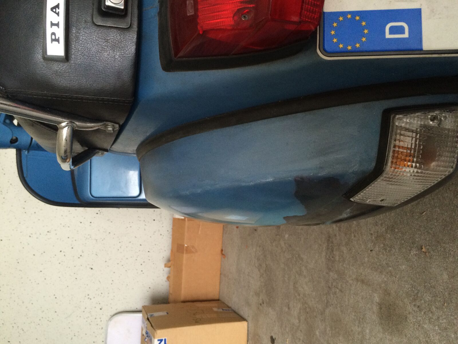 ich habe mir heute eine Vespa PX 80 Bj. 83 in hellblau gekauft. Es wurden einige Teile mit Sprühdose nachlackiert, leider ist der Farbunterschied groß.