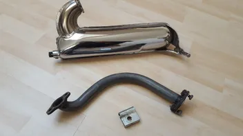 zum Verkauf biete ich hier eine neuwertige Faco-Banane ( in Chrom ) inkl. Krümmer und Halteblech an.