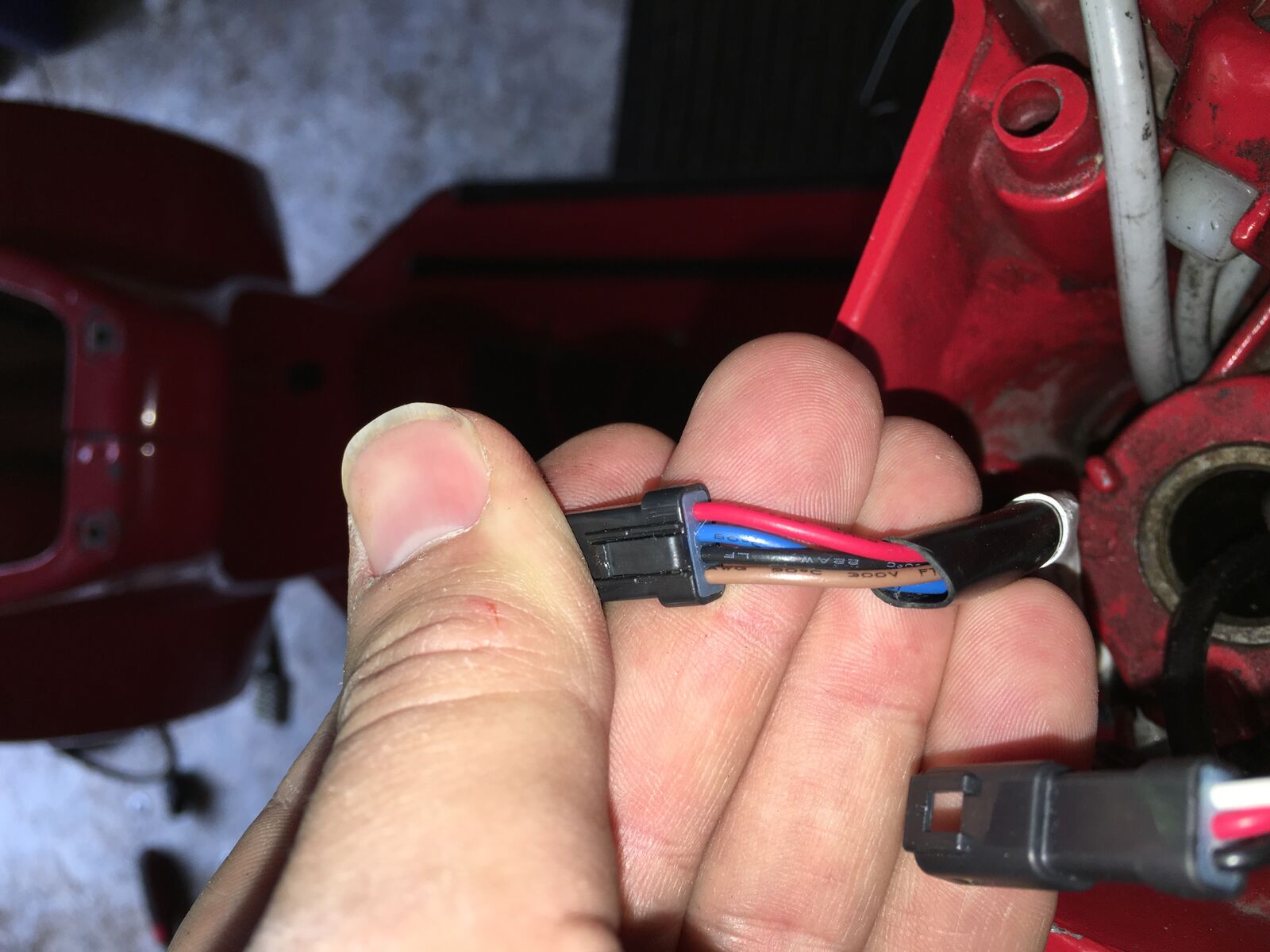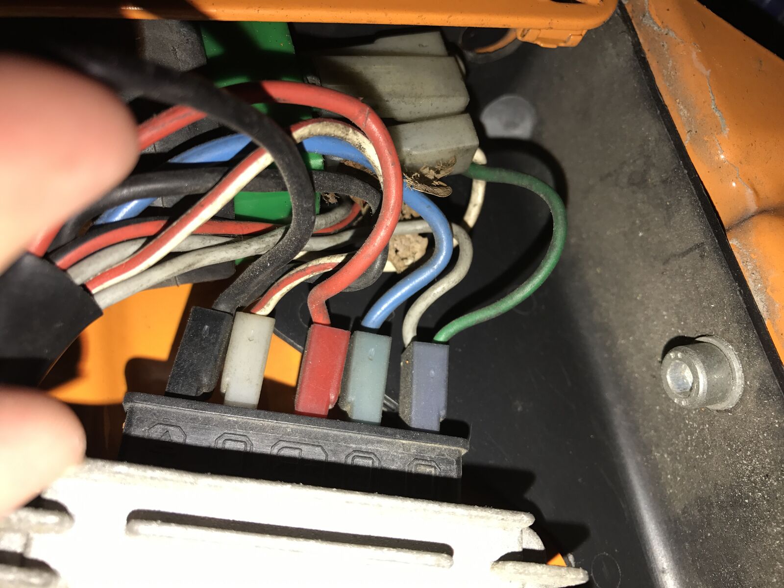 von Regler C geht rot/weiß nach vorne zur Steckverbindung und dann weiter auf weiß vom Zündschloss, soweit hast du vollkommen recht.
