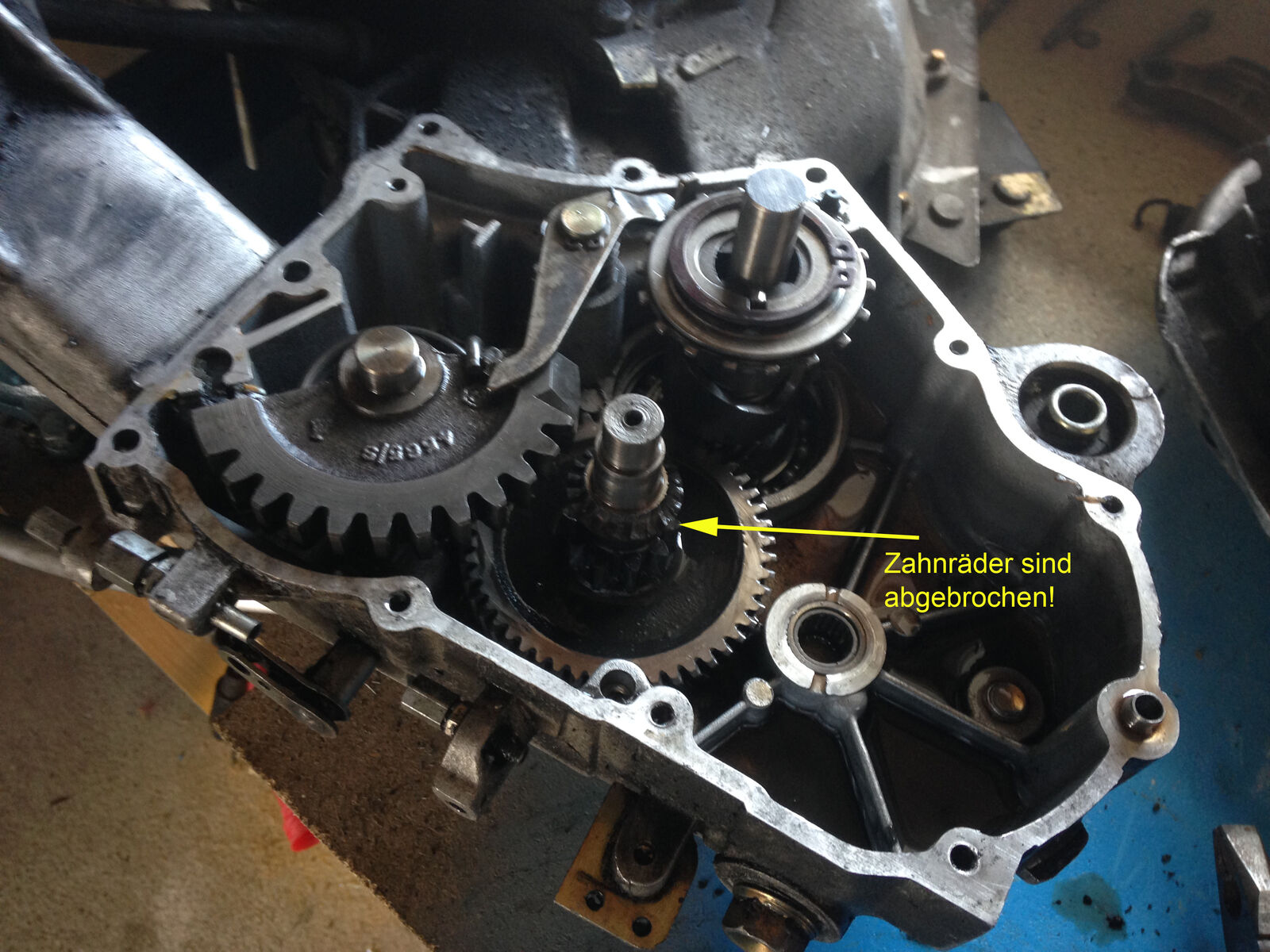 An meiner Vespa PK50 Plurimatic geht der Kickstarter nicht mehr. Nach Öffnung des Gehäuses habe ich gesehen, dass Zahnradzacken abgebrochen sind.