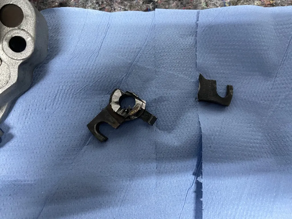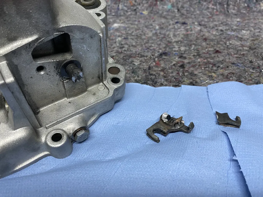 Nachdem der Sch.....Pin sich mit nichts dazu bewegen lies seinen Platz zu verlassen (Zange, Hammer, Hitze, WD-40 Bad, auspressen) habe ich mich in einem Akt der Verzweiflung zum Ausbohren entschlossen. Also zentral angekörnt und mit 3mm HSS-Bohrer freihändig per Augenmaß versucht genau axial zu bohren. Das ging auch ganz gut bis ungefähr Mitte der Schaltwelle, dort ist der Bohrer aus der Achse gelaufen und letztlich abgebrochen. Deshalb Plan G: Den maximal zerstörerischen Weg gewählt und die Flex ausgepackt. Jetzt kurzerhand und mit der gebotenen Vorsicht, um nicht ins Gehäuse zu flexen, das blöde Ding rausgeflext. Das Schicksal der Schaltgabel war eh schon mit der Entscheidung zum Ausbohren besiegelt. Jetzt ist das Mistding raus und ich brauche ne neue Schaltgabel. Wer eine brauchbare zuhause rumliegen hat gerne per PN. Sonst geht morgen die Bestellung raus.