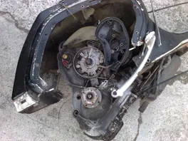 Danach war mir die Lust auf Rhein vergangen also schnell den Ersatztreifen druff und nach Hause gefahren. Zu Hause angekommen und abgestellt habe ich dann den Schaden begutachtet. Zum Glück scheint der Rahmen nicht verzogen zu sein, alles stimmt noch und funktioniert noch. Dann kam aber der nächste Schock. Irgendwie muss ich mit dem Hinterrad auch durch dieses Loch gefahren sein und zwar so, dass meine Getriebeölablassschraube einen Schlag abbekommen hat und schön alles mit öl zusaut( Als ich es abgelassen habe was wegen der kaputten Schraube nicht leicht war damit es nicht so sifft waren noch etwa 5ml drinne. Das heißt ich muss auf 5km Strecke 245ml Getriebeöl verloren haben). Was für ein beschissener Tag. Ich glaub heute ist wieder