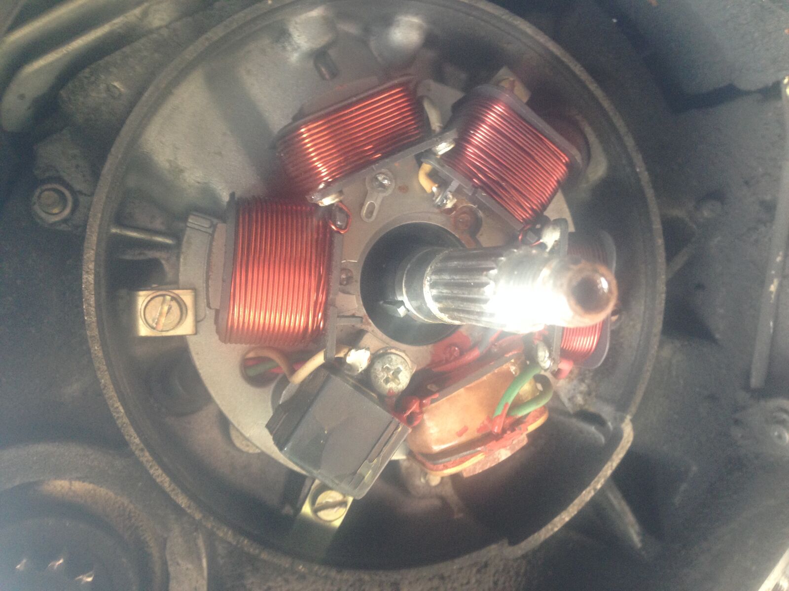 Es gibt wieder ein Update. Die kleine Werkstatt von nebenan war so nett und hat mir die Schrauben gelöst! Dann habe ich mich weiter vorgearbeitet bis ich bei der Zündgrundplatte gelandet bin.