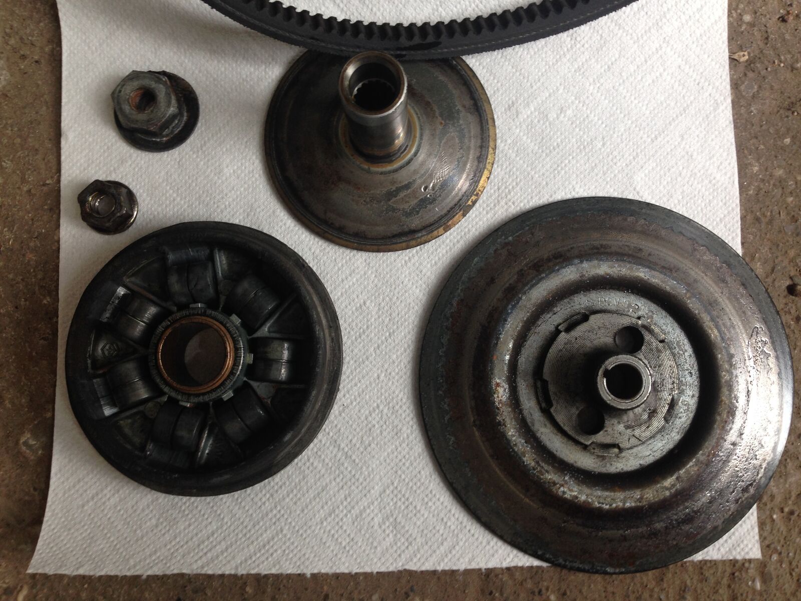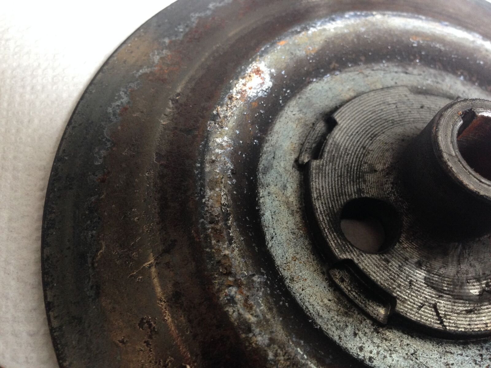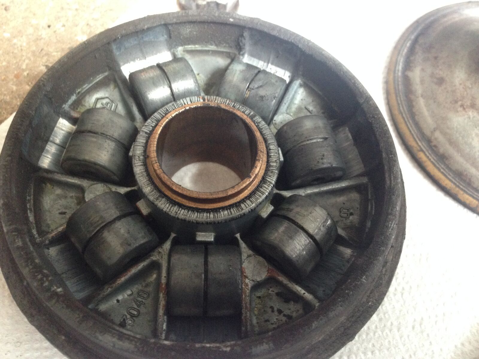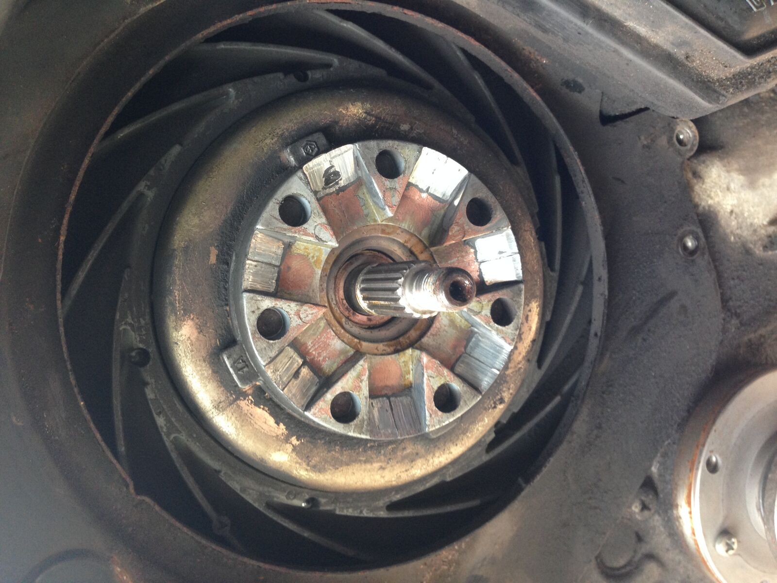 Guckt euch bitte mal die Bilder an in Hinsicht auf genereller Zustand und ZGP [lexicon='Zündzeitpunkt',''][/lexicon]. Müssen die Markierungen nicht übereinander stehen? Und warum sind Löcher in die Kupplung gebohrt???