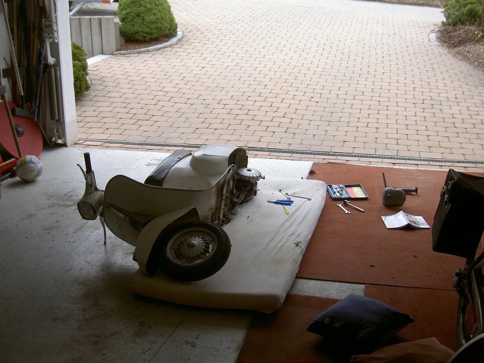 Davor musste das komplette Innenleben der V50 gestripped werden und die Oberfläche vorbehandelt werden.