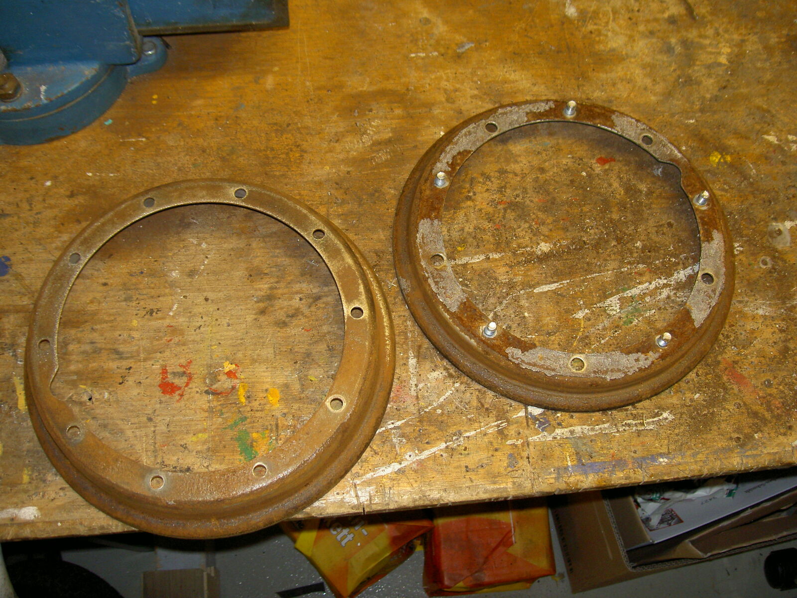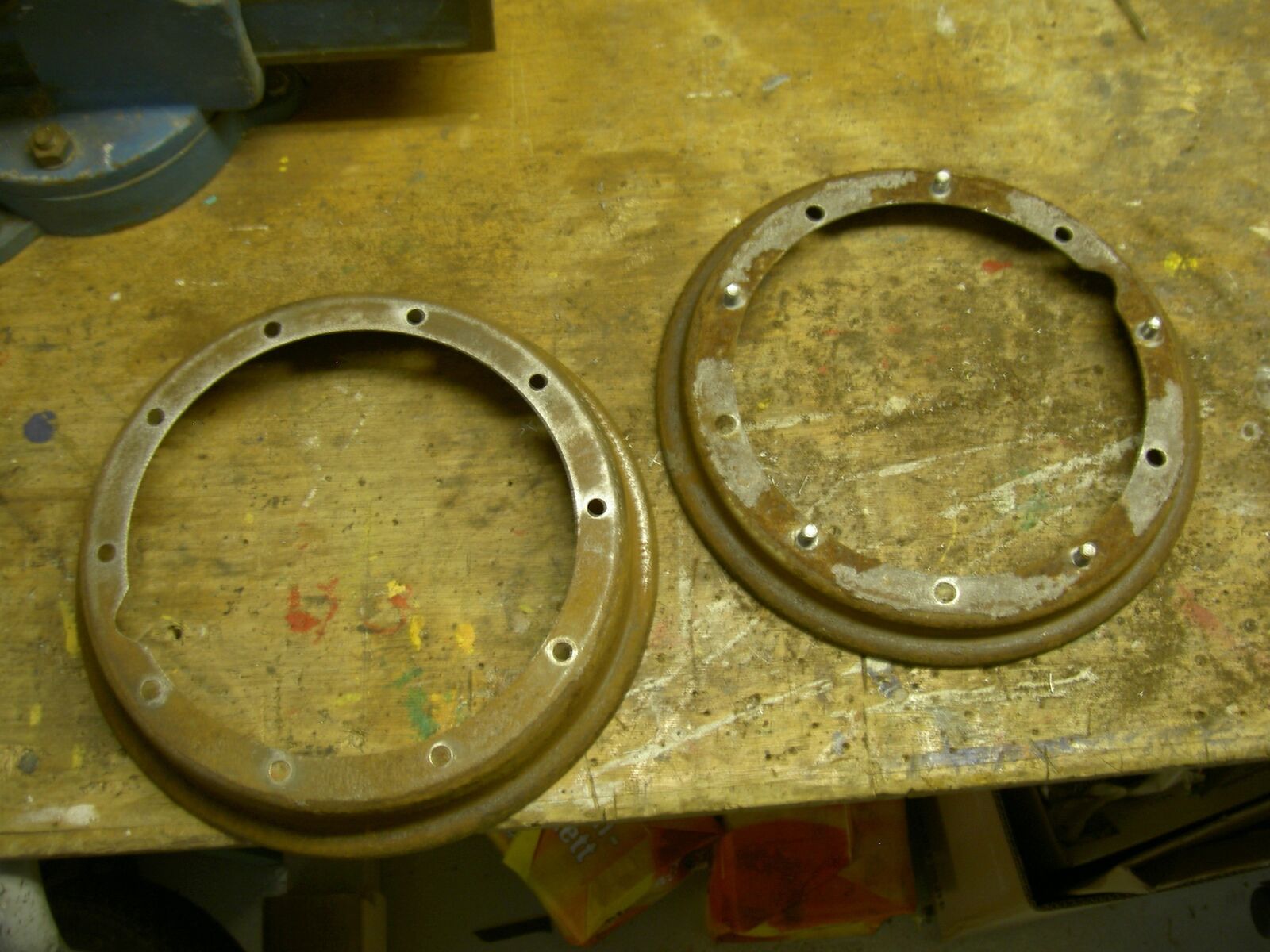 Achja.. Durchrostungen sind keine vorhanden.Bei der linken Felgenhälfte hab ich schon angefangen den Rost ein wenig abzuschleifen. Wollte mir aber erst mal eure Meinung anhören bevor ich da weitermache.