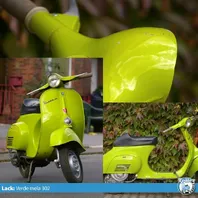 ich würde meine Vespa V50 gerne grün/grüngeld lackieren. Allerdings bin ich mir jetzt nicht sicher, wie verde mela 302 und wie giallo chromo 933 aussieht. Auf dem Bildschirm ist das zwar immer so ne Sache, aber vielleicht könnt ihr mit Bilder von euren Fahrzeugen weiterhelfen. Ich habe eben auch schon Bilder gesehen, wo verde mela sehr grell aussieht. Mir würde eben das Bild mit der Vespafarbe, die ich angehängt habe, gut gefallen.