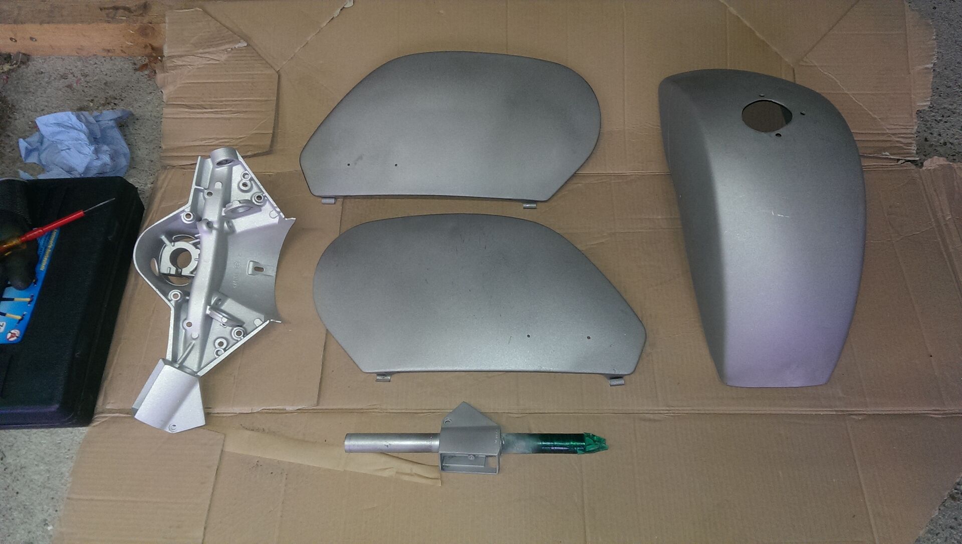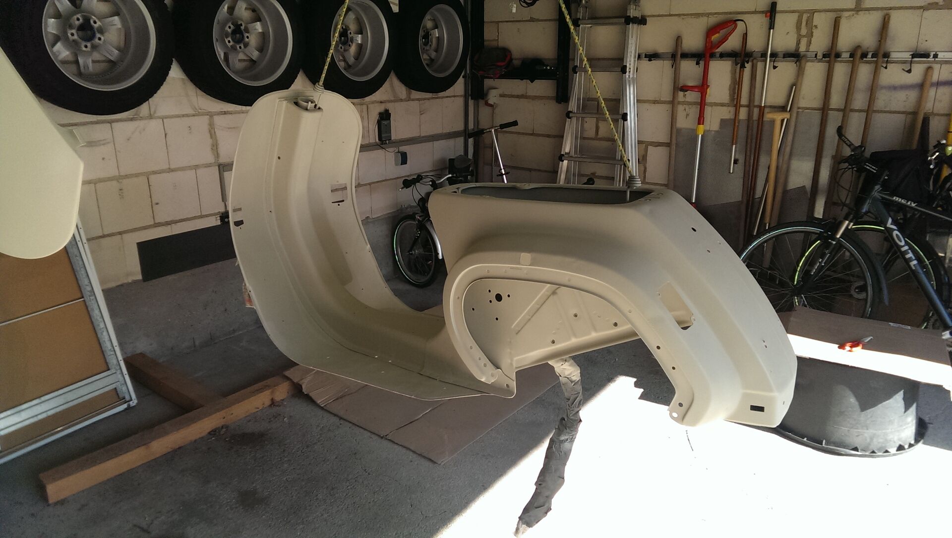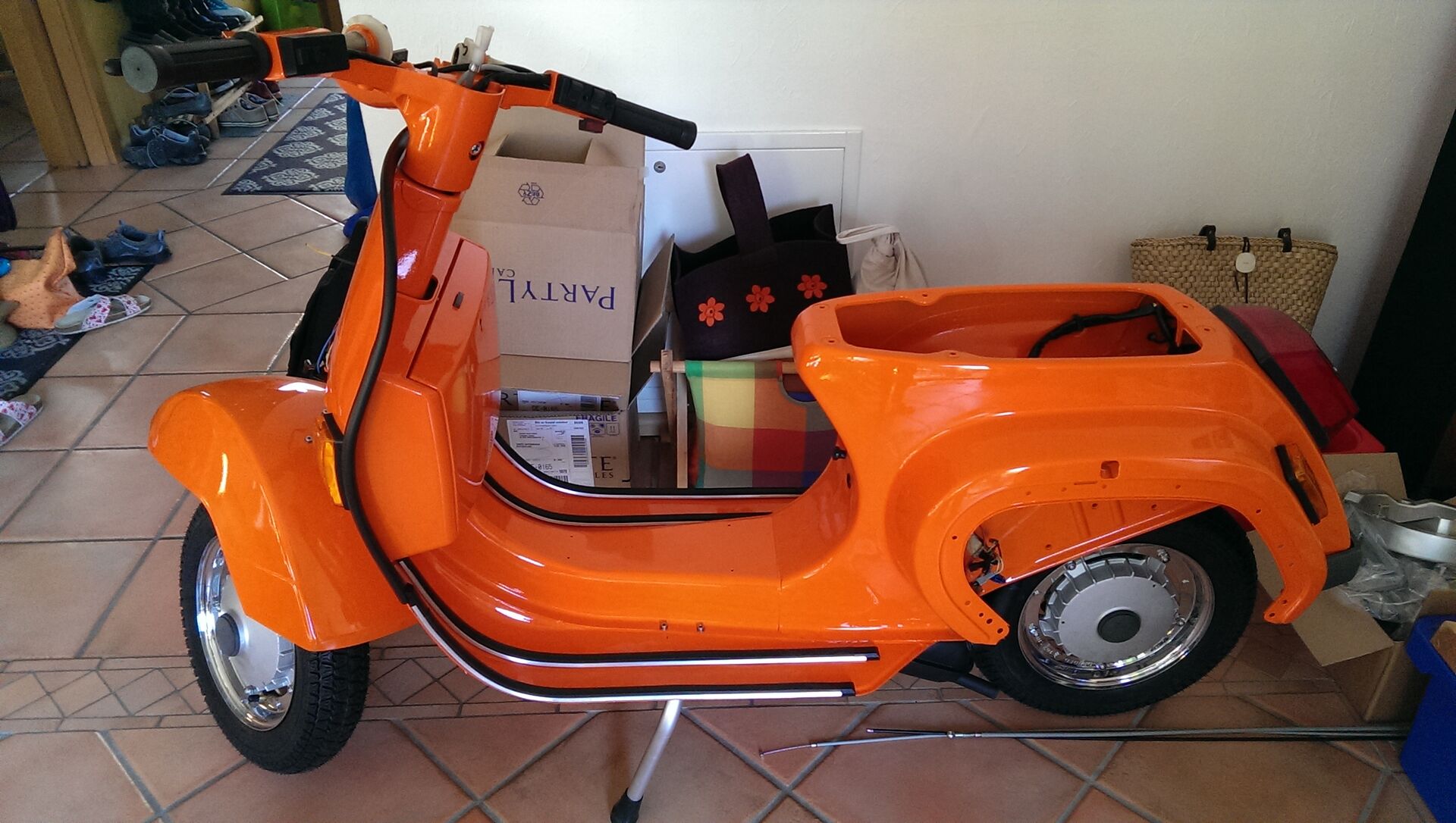 Die Trittleisten sind von Scootercenter, in der Mitte kommt normal so eine Plastikabdeckung hin (gefällt mir nicht werde ich wohl die selben Leisten nochmal kaufen und zurechtschneiden)
