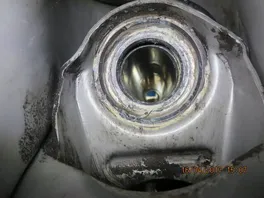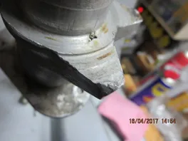 Die Pos. 6 war bei meiner ersten Montage nicht ordentlich ausgeführt. Ich hatte das Lager nicht bis in den Lagersitz eingeschlagen. Es fehlten hier vermutlich 2-3 mm, so dass die Radachse beim Anziehen der schwingenseitigen Mutter in Richtung Schwinge diese 2-3 mm wandern konnte und daduch die Bremstrommel auf die Bremsankerplatte drückte. Anbei ein Foto, wie die Radachse nun korrekt im Bereich der Bremstrommelaufnahme zur Bremsankerplate steht: