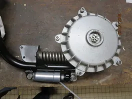 1) Mit dem Heißluftfön die Schwinge im Bereich des großen Lagers erhitzt.