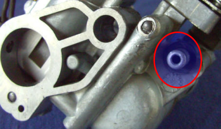 Kann mir jemand die Funktionsweise des Vergasers in Bezug auf das im Bild rot gekennzeichnete Rohr erklären. Das Rohr wird über die Schwimmerkammer mit Benzin versorgt und geht in den Motorblock. Meine Vermutung ist, dass über diesen Zugang das Benzin in den Motor/Getriebe gelangt....