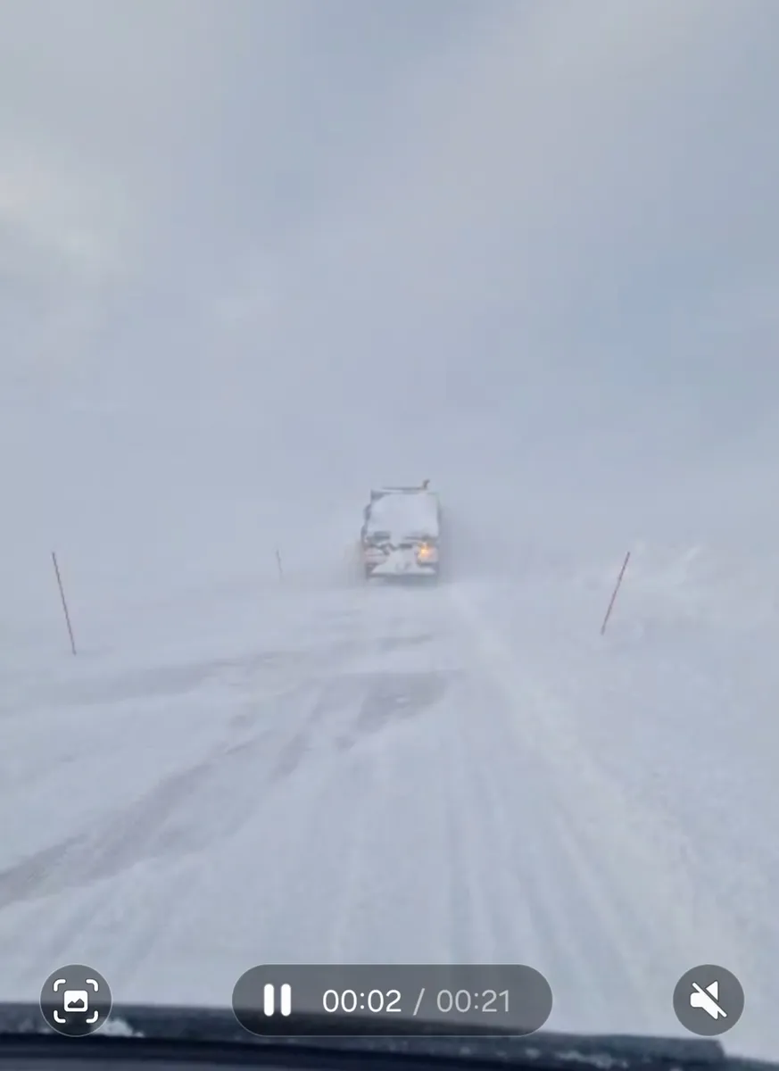 Zum Hintergrund: In Norwegen werden einige Pässe je nach Wetterlage gesperrt. Da dies aber oft die einzigen Verbindungen sind, fahren zu festen Zeiten (Fahrplan im Internet und auf nem Schild am Schlagbaum der Sperrstelle) Convoys/ Kolonnen. Vorne weg ein Schneepflug (also ein richtiger, nicht so kleine 3t-er mit Räumblech), dann die "Passagiere"/Autos und hinten dran noch ein Sicherungsfahrzeug. Damit geht es dann mit ca 50 km/h durch den Schneesturm und die geräumten Schneewehen. S.a. https://www.vegvesen.no/en/traffic-inf…ve-in-a-convoy/ .