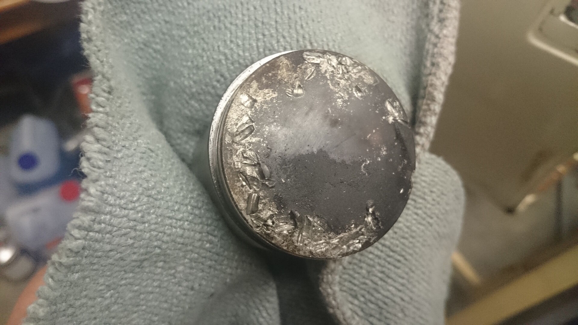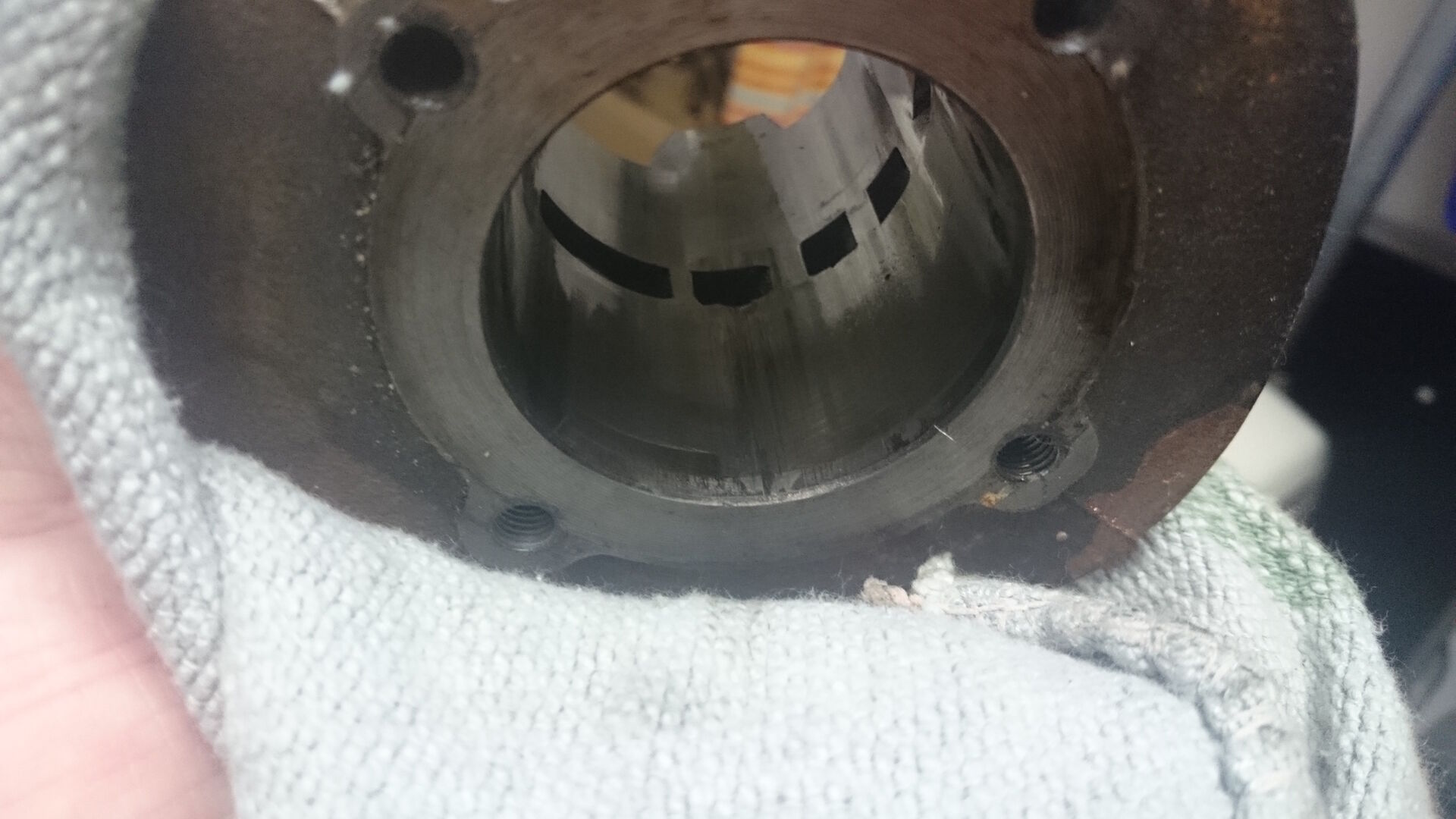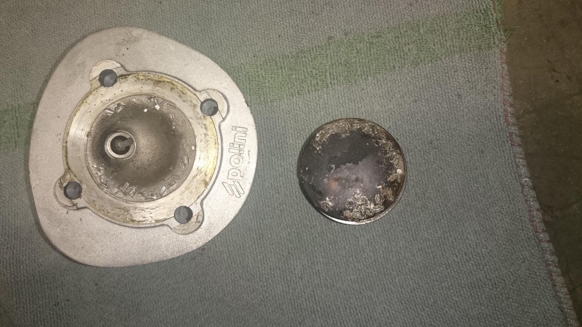 Seht eich mal die Bilder an!! Ist da was durchglaufen oder was ist das? Der Kopf sieht mies aus, evtl. kann man das rausschleifen, der Kolben ist total hinüber, der Zylinder hat spuren, das könnte aber noch gehen.