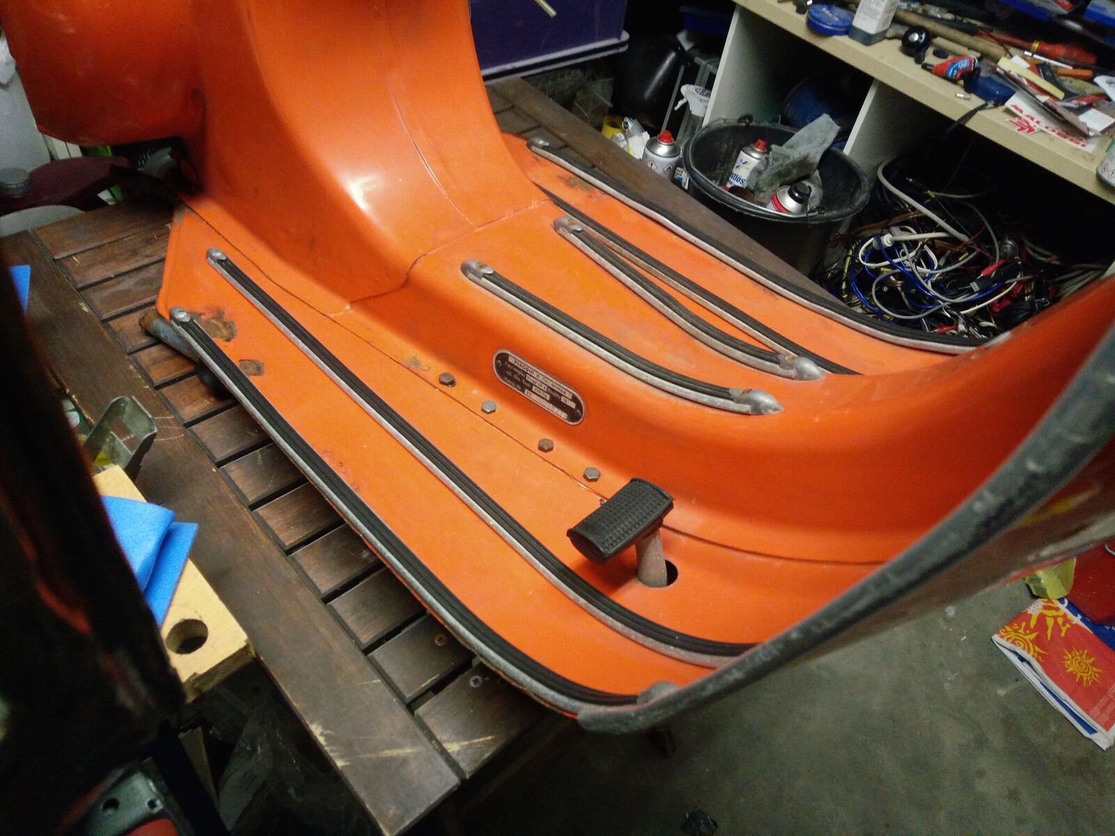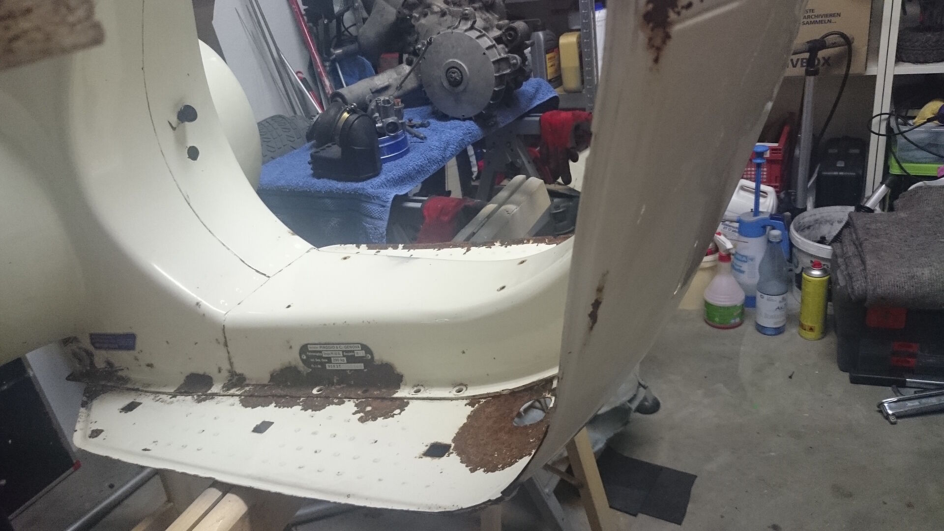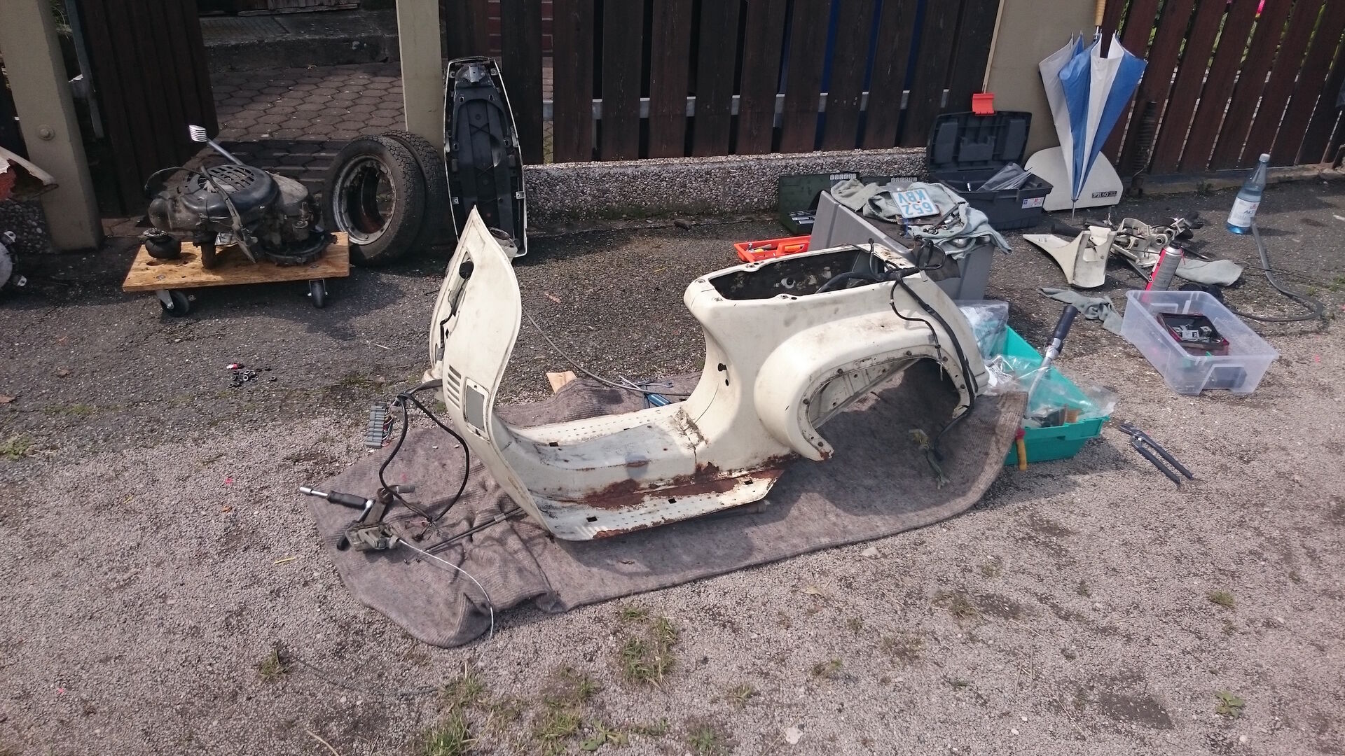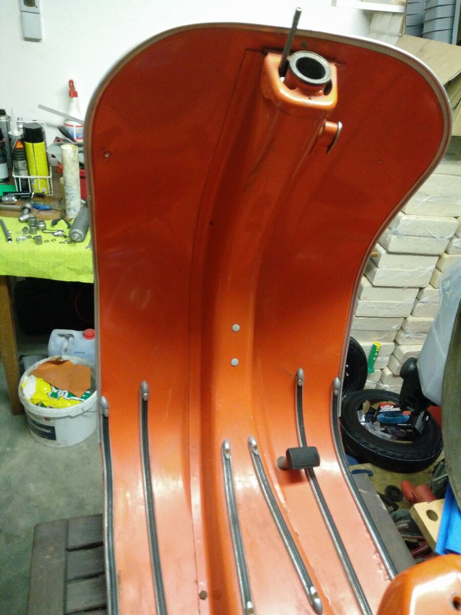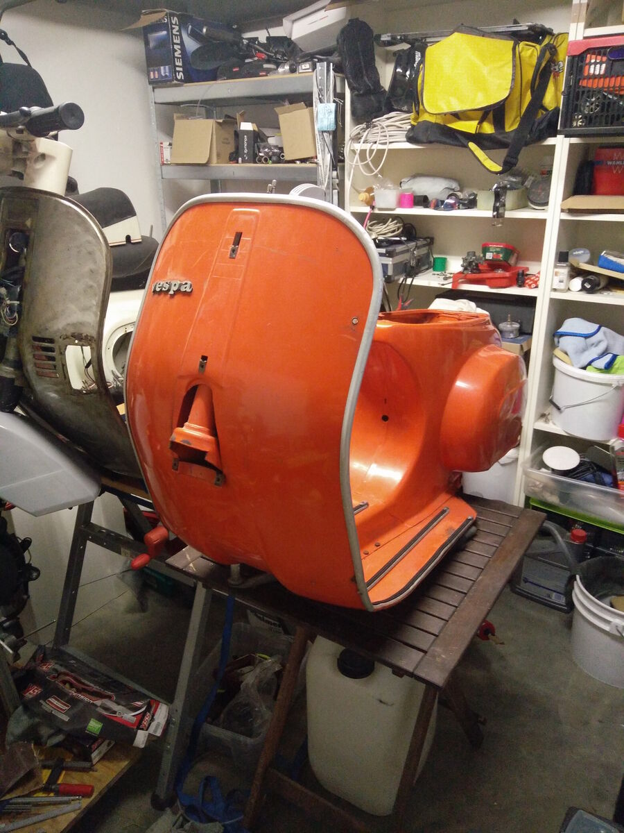 gestern hab ich mich ans zerlegen gemacht. Die Karosserie der Vespa ist komplett nackig.