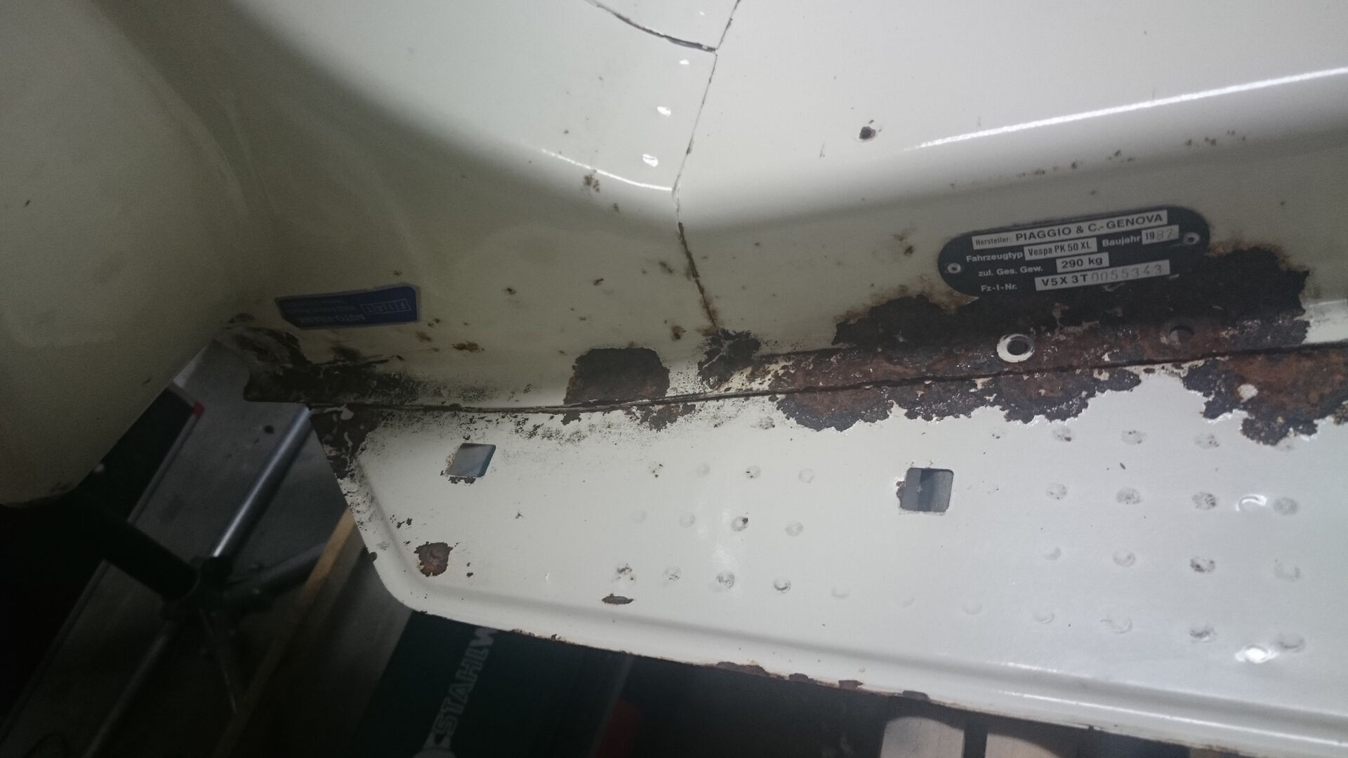 Ich bin zum Entschluss gekommen das ich in die Karosserie nicht sehr viel Geld investieren werde. Ich hab mich hier in der Stadt mal ein bisschen umgehört, es würde einfach zu teuer werden wenn man die PK Top Restaurieren möchte. Das ist es mir nicht wert, es gibt für mich schönere Vespas. In die Technik investiere ich lieber wie in Lack und perfektes Aussehen. Was mich auch noch reizen Würde, einen 50N Rahmen mit der Technik der PK umzubauen.