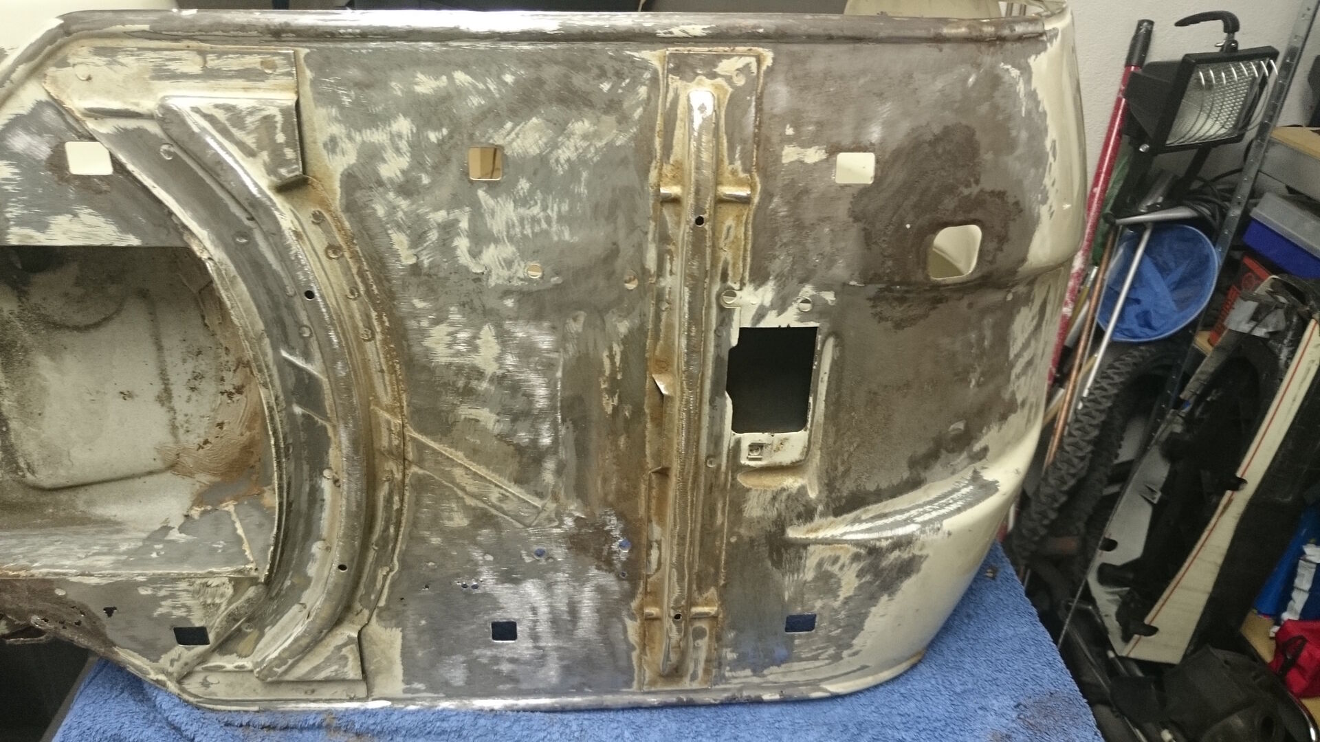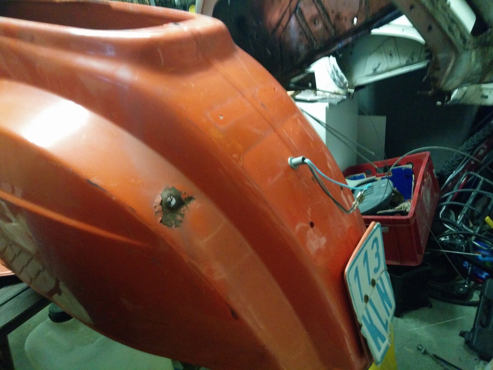 Hier geht es um die PK80XL. Die Karosserie hatte zugeschweiste Blinker die auch noch mit viel Spachtel überzogen waren. Da ich in die PK nicht viel Geld investieren wollte, entschied ich mich für ein chemisches entlacken. War im Rückblick ein großer Fehler, da der vorhandene Rost immer noch am Blech war, wie vorher auch.