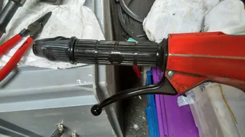 Erst mal mit 18er Cu.rohr und 18/18 Lötmuffe zusammengesetzt (Blinkerhalter passt genau rein!), sollte sich ja nicht drehen (wie beim Original), muss mir nur noch eine Sicherung basteln daß das Rohr im Griffrohr bleibt.