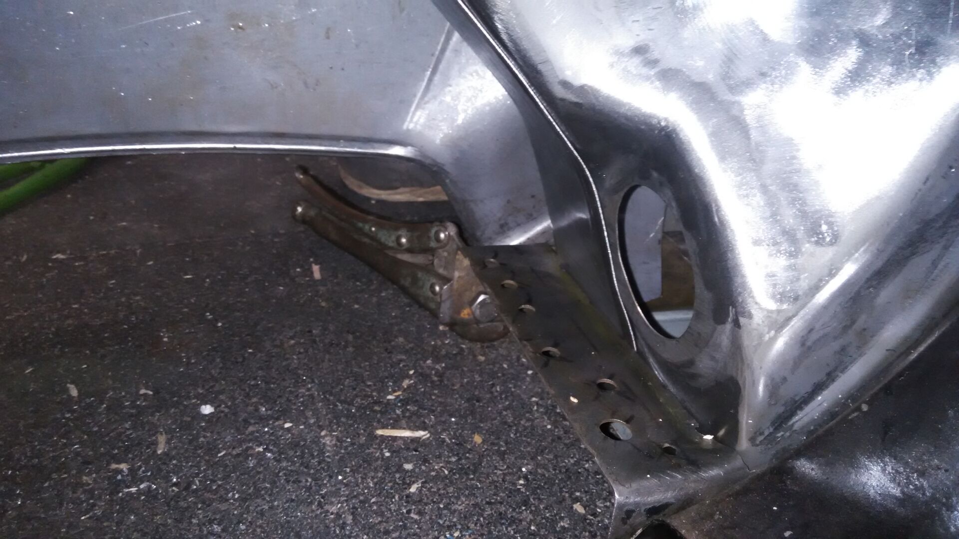 Hab's kapiert, die Kante nach unten, weil sonst kommt man nicht mit der Schweißpunktzange dran!