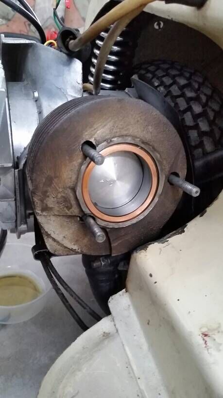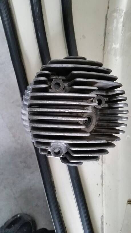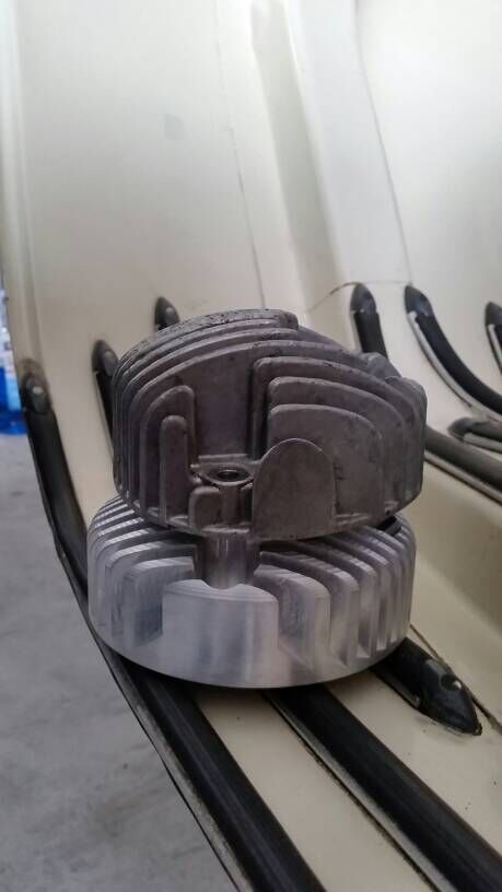 Der Kopf für den originalen Zylinder muß etwas oval sein. Da er am Rahmen vorbei muss. Der von Bollag ist zu rund und die Löcher für die Bolzen passen auch nicht.