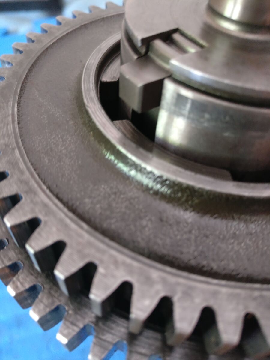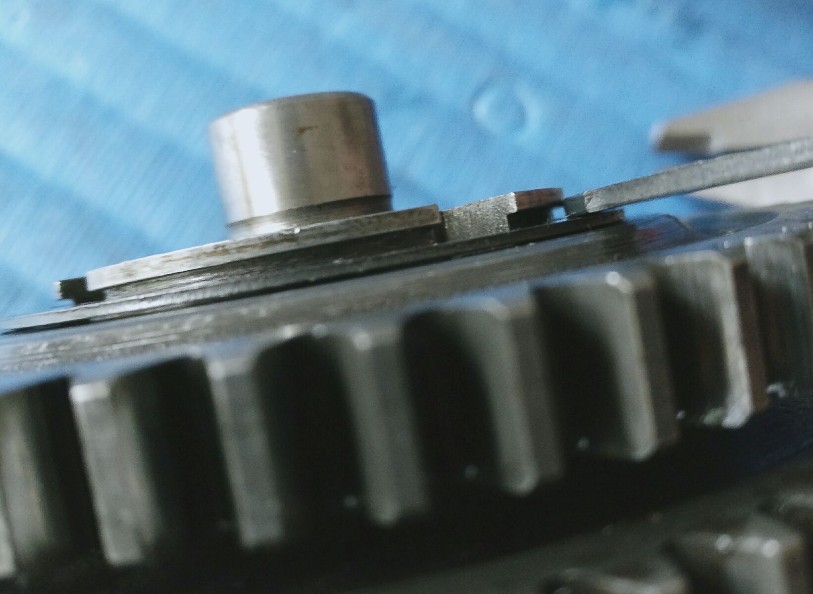 Die Zahnräder lassen sich zwar drehen und werden nicht mehr gestaucht wie vorher, aber mit Reibgeräuschen und meine Fühlerlehre passt auch nicht mehr dazwischen. (nicht so locker wie hier: Video)