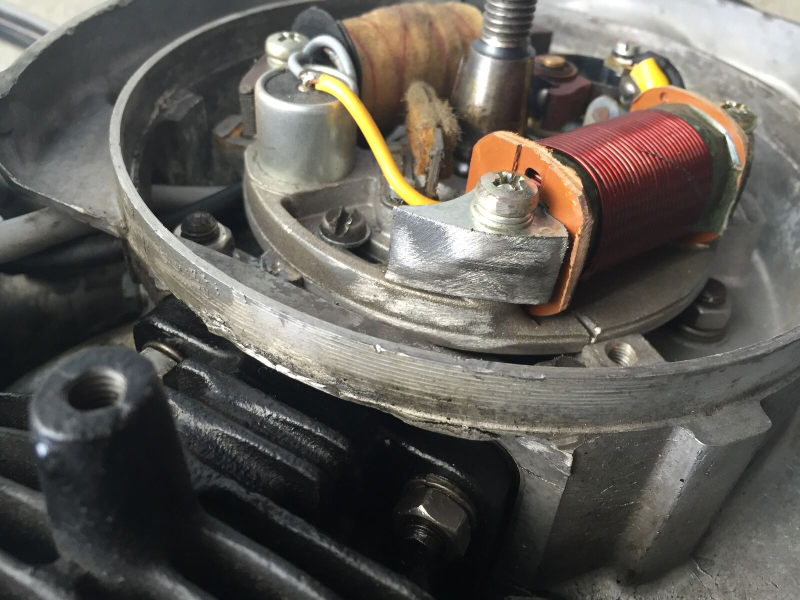 Habe einen neuen Zündkontakt und Kondensator bestellt, sollte die Tage kommen. Was ich auch nicht verstehe, dass vom Kondensator zur Spule ein graues Kabel angelötet wurde. Bei dem Kondensator wo ich bestellt habe ist nur das gelbe Kabel. Was kann das graue Kabel sein?