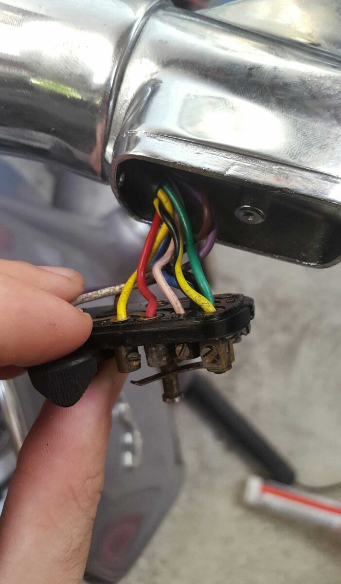 Diese Nr. 8 ist mit einem Blech verbunden, dass beim drücken des Hupenknopfs auf die Nr. 3 am Lichtschalter drückt. und das wäre dann wiederrum das Gelbe Kabel das zur Hupe geht.