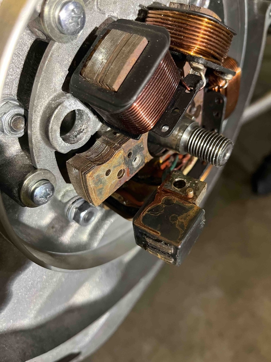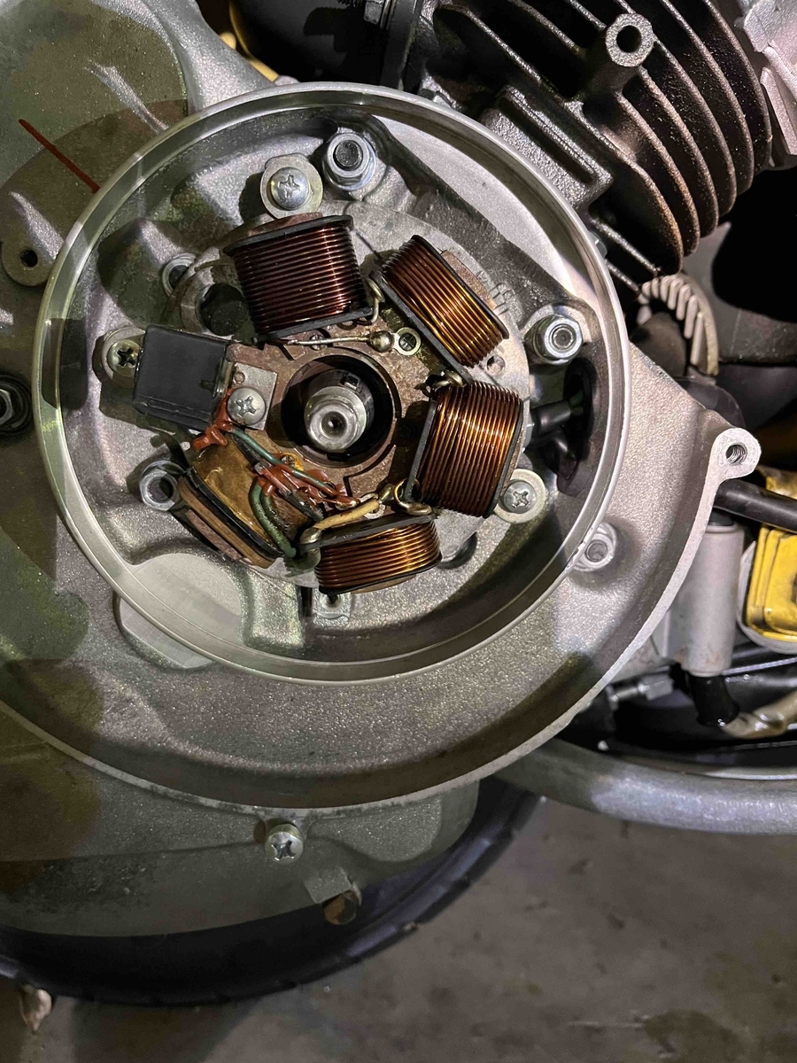 Ich habe mal Fotos von der Zündgrundplatte, dem Pickup und meinem Testaufbau gemacht. Den Rost unter dem Pickup habe ich mit einem Tuch und WD40 entfernt. Hat auch nicht geholfen.