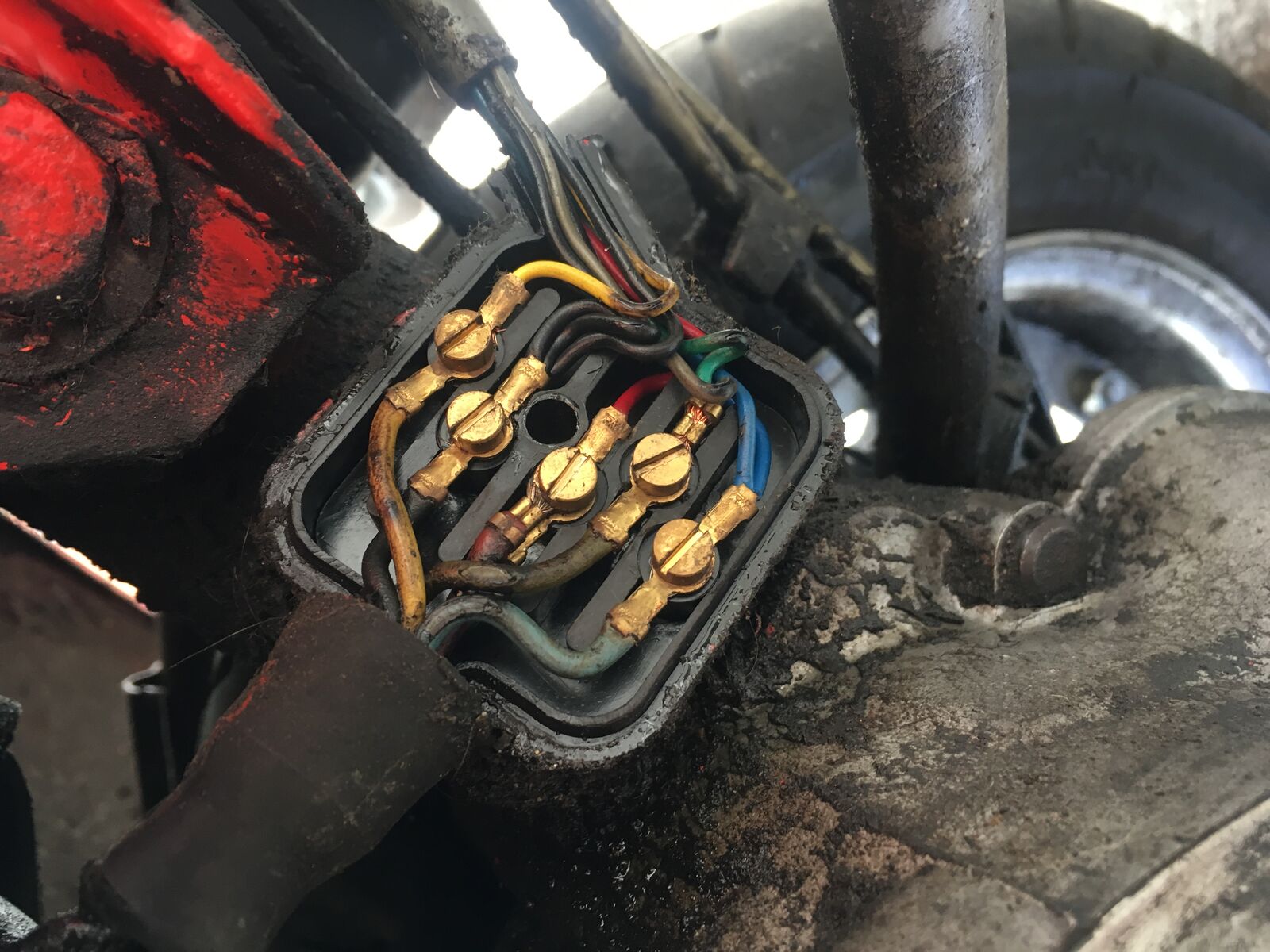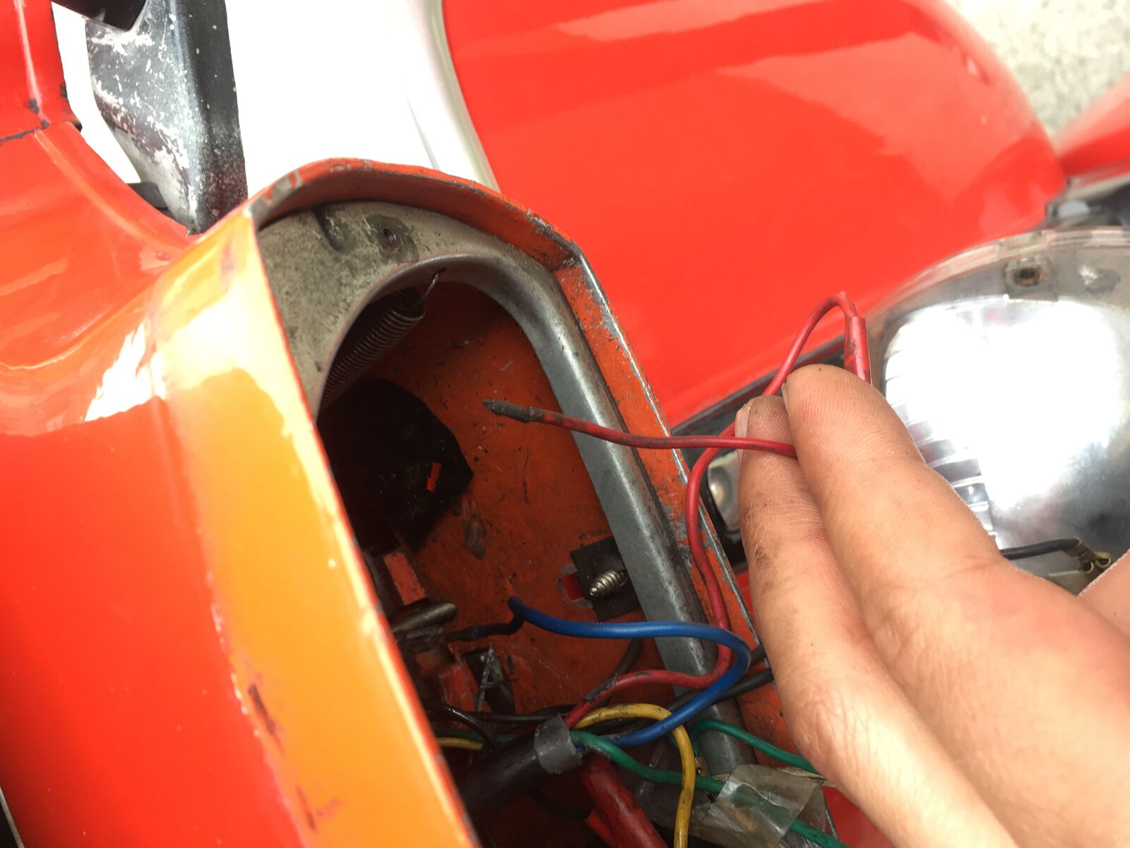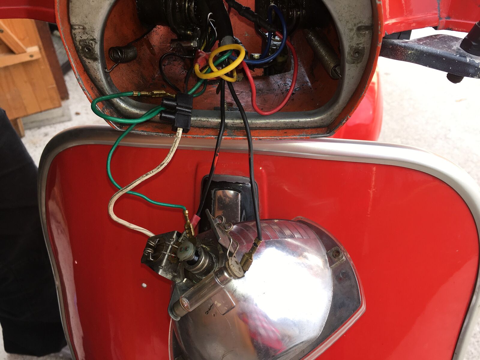 Das weiße Kabel ist mit lüstenklemmen an 2 schwarze Kabel verbunden...eins geht nach hinten und eins als Masse an den Lenker...