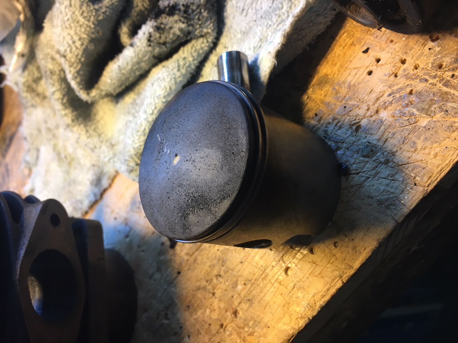 Der Kolben hat leider keine Markierung auf der Oberseite aber aufgrund des Auslasses an der Seite vermute ich der muss weg vom Auspuffauslass sein!?