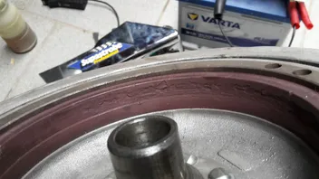 Weil ich es mit Ankicken leid bin und ich sie sonst nicht an bekomme, stecke ich eine Bohrmaschine auf die Mutter vom Polrad.