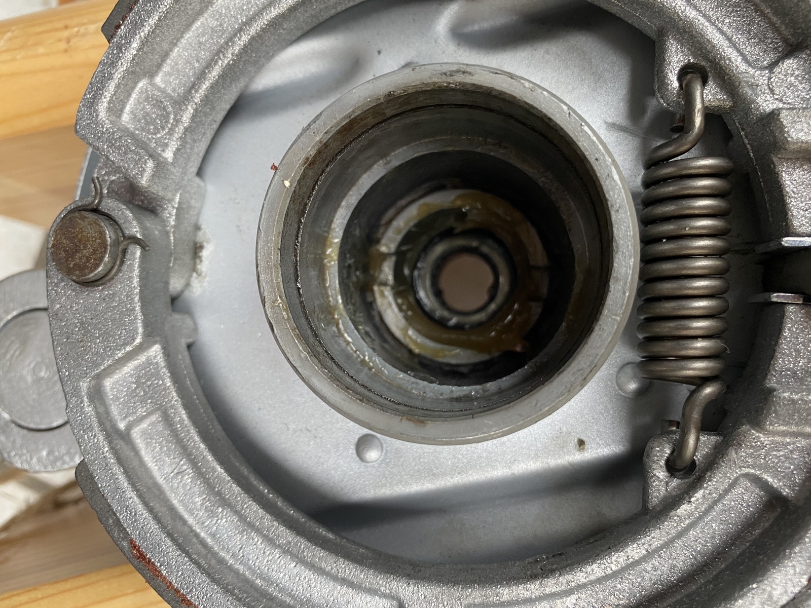 So Wellendichtring und die hintere Mutter sind raus, wofür genau brauche ich das spezialwerkzeug? Müsste ich die Achse nicht mit dem Lager vorsichtig rausschlagen können? Ich nehme an das schwarze ist nur fett?