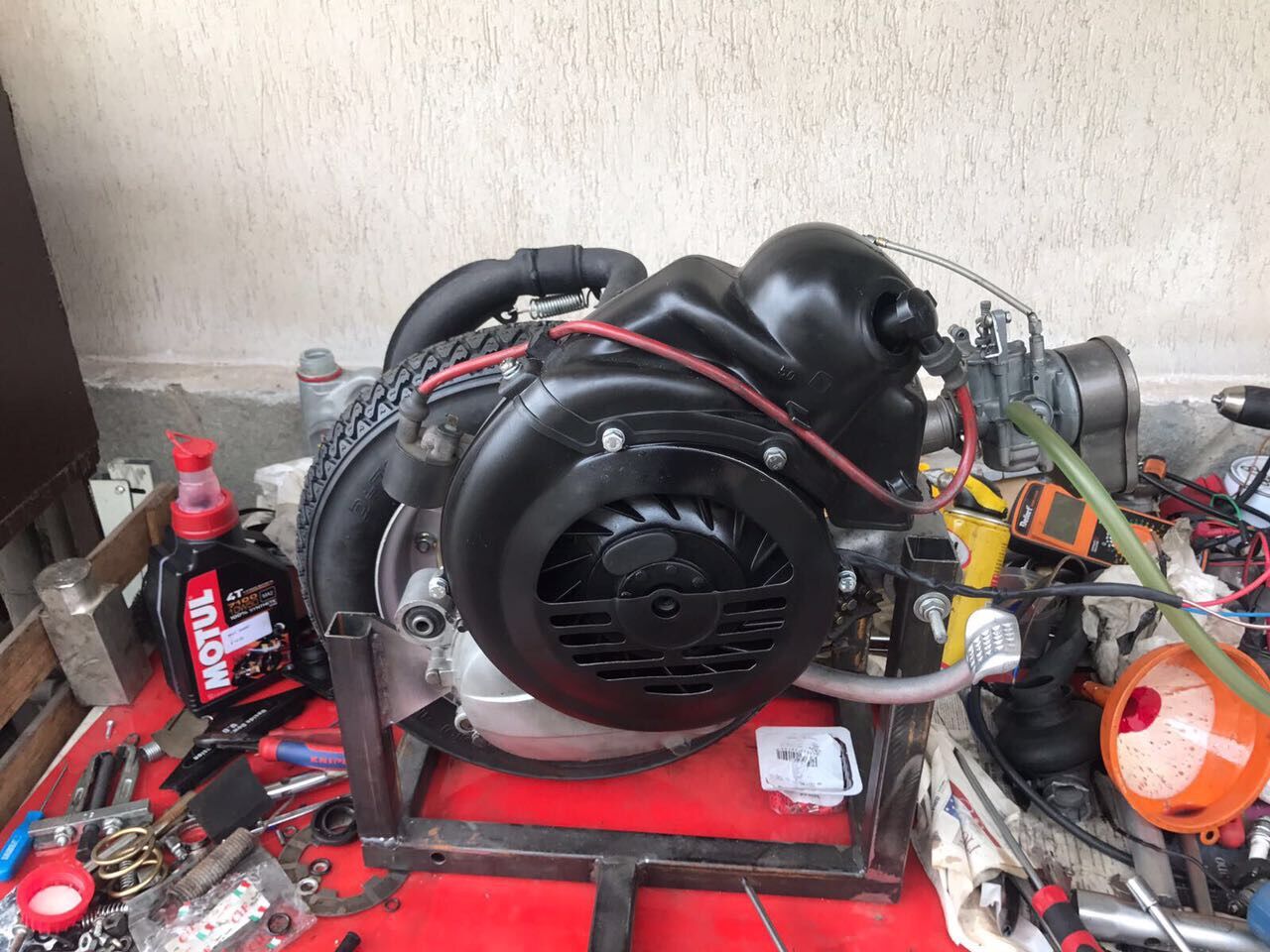 Hier wurde auf 12v elektronische Zündung umgebaut. Das heißt, das Ding springt super an und läuft zuverlässig.
