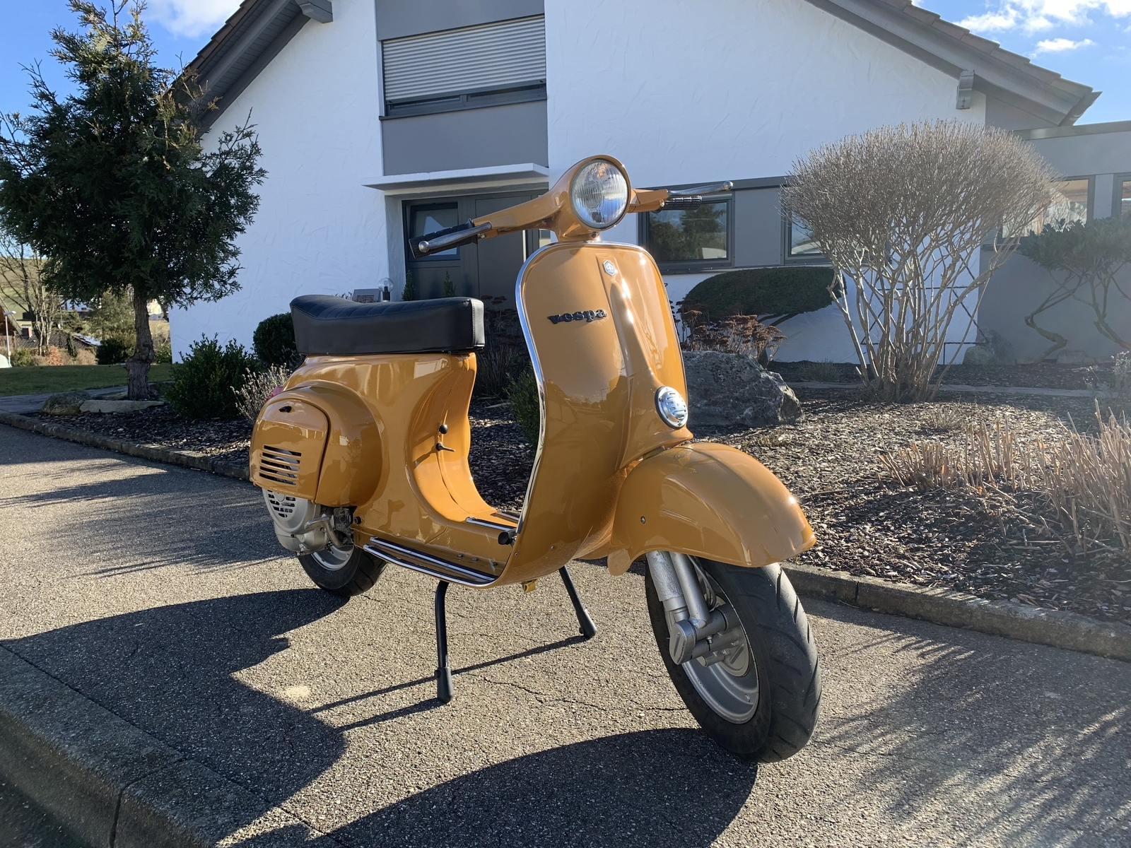 so im Originallack, gefällt der Roller sogar mir... Keine Beulen und wenig Flug Rost, erdie würde ich sogar so lassen