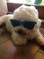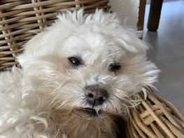 Mambo ist ein Malteser. Der kann alles … schlafen….fressen… scheissen