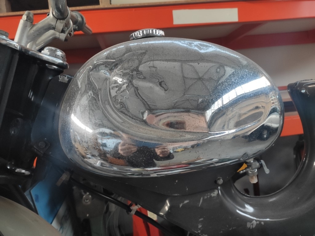 Leider hat der Tank ne große Delle. Bei der Materialstärke ist ein ausbeulen OHNE den Chrom zu beschädigen ![]()