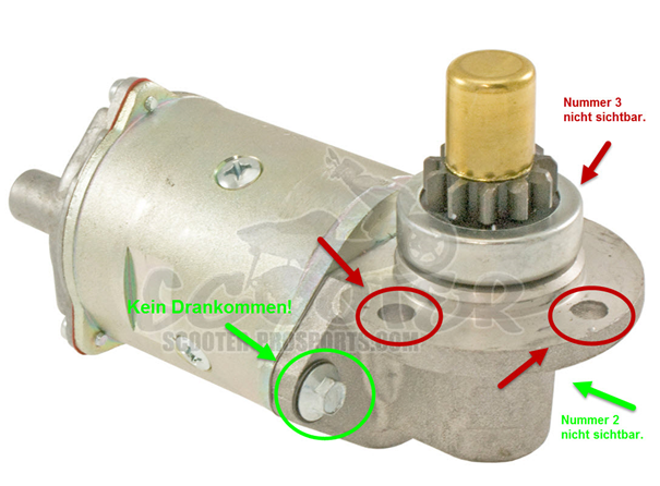 Nun habe ich sogar 4 Schrauben gelöst (siehe Bild, an die untere Grüne links war kein Drankommen), aber der Anlasser bewegt sich nicht ein µ!!