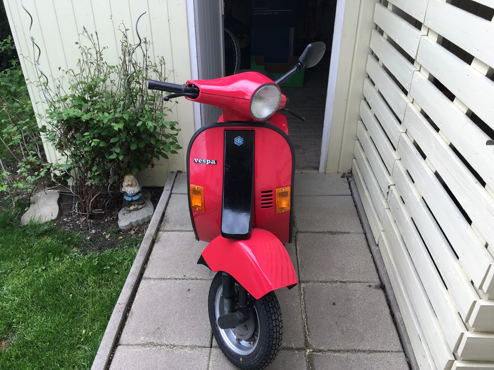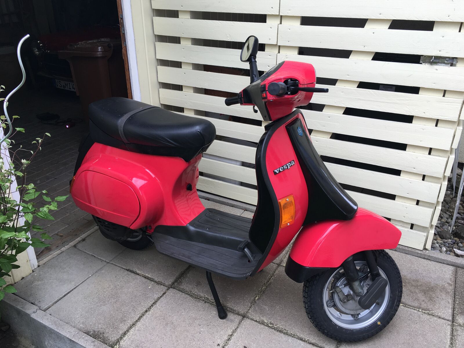 Die deutsche Betriebserlaubnis habe ich ja zwischenzeitlich. Ich habe die letzte 8 Wochen auch intensiv genutzt und die Vespa zerlegt, damit ich sie etwas herrichten kann. Die Verkleidung am Lenkrad wurde gerichtet, die Dellen wurden ausgebeult, etwas entrostet ( wobei das sehr wenig war) und frisch mit freundlicherer Farbe, als das Mattschwarz, frisch geduscht. Das ganze sollte keine Restauration nach dem Motto besser als neu werden, sondern eine nette Alltagsvespa mit kleinem Budget werden.
