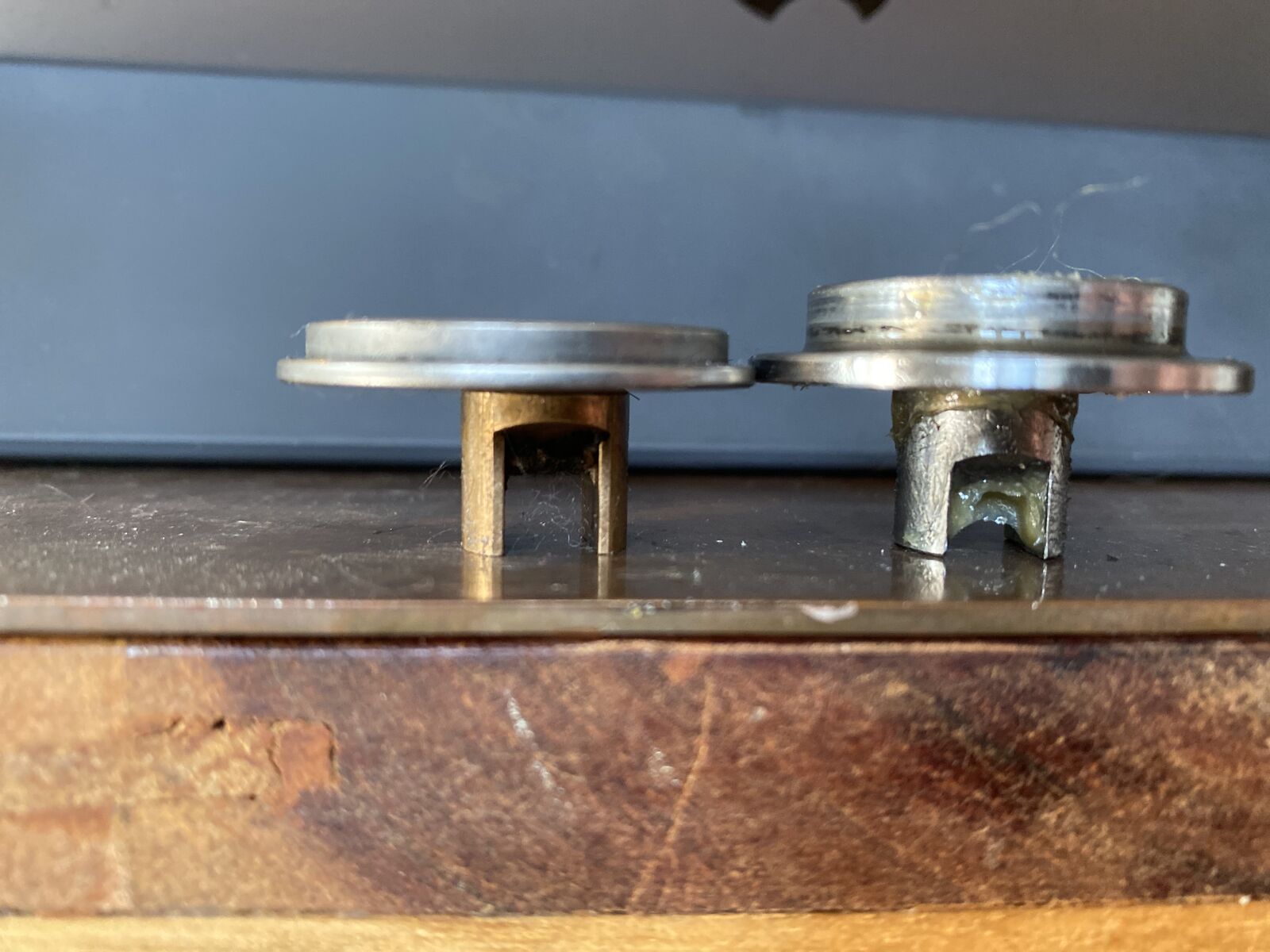 Die Ursache ist, dass die neue kugelgelagerte Andruckplatte schlicht zu tief baut (hier im Vergleich mit normalem Pilz/Andruckplatte):