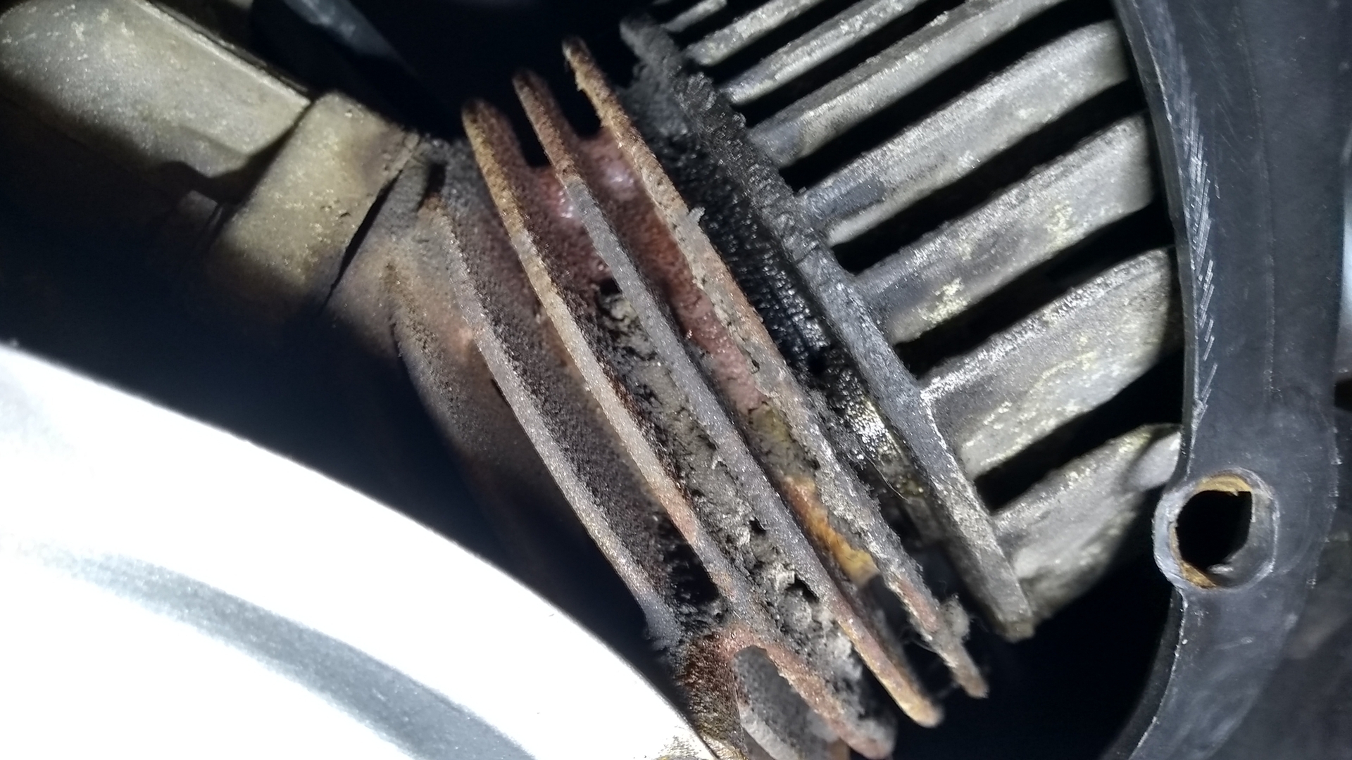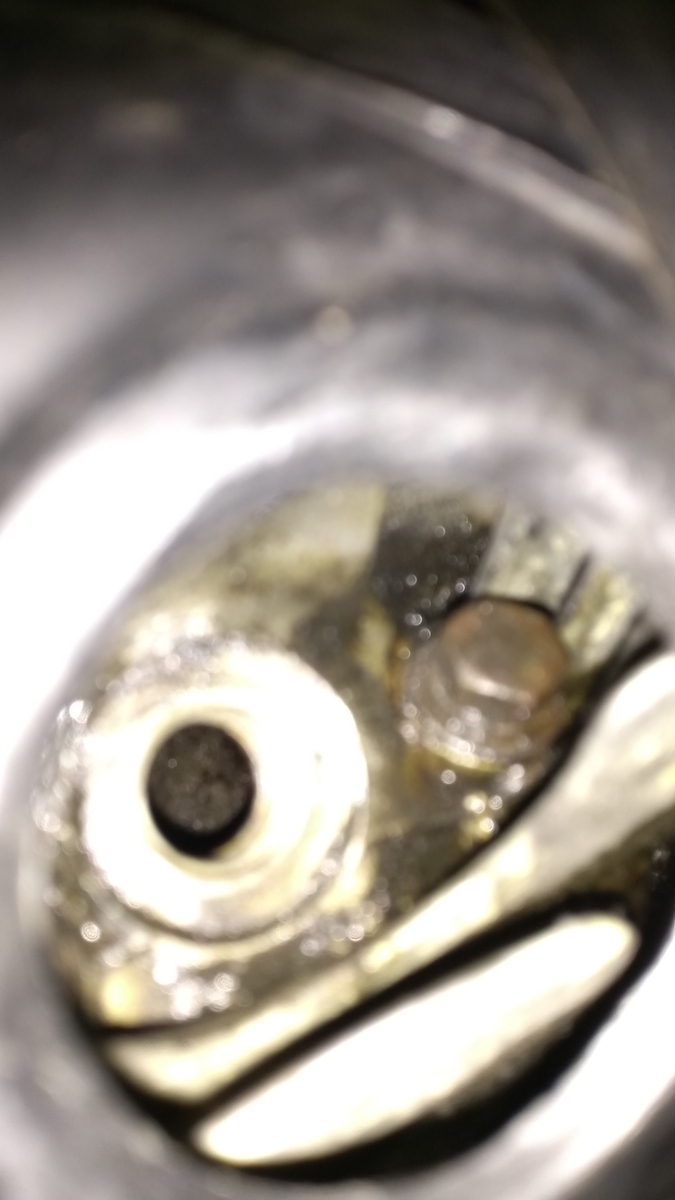 dann habe ich mit dem Finger versucht die Kompressor zu prüfen. Zündkerze raus. Dabei ist mir aufgefallen, dass um das Zündkerzenloch ziemlicher Schmodder ist.