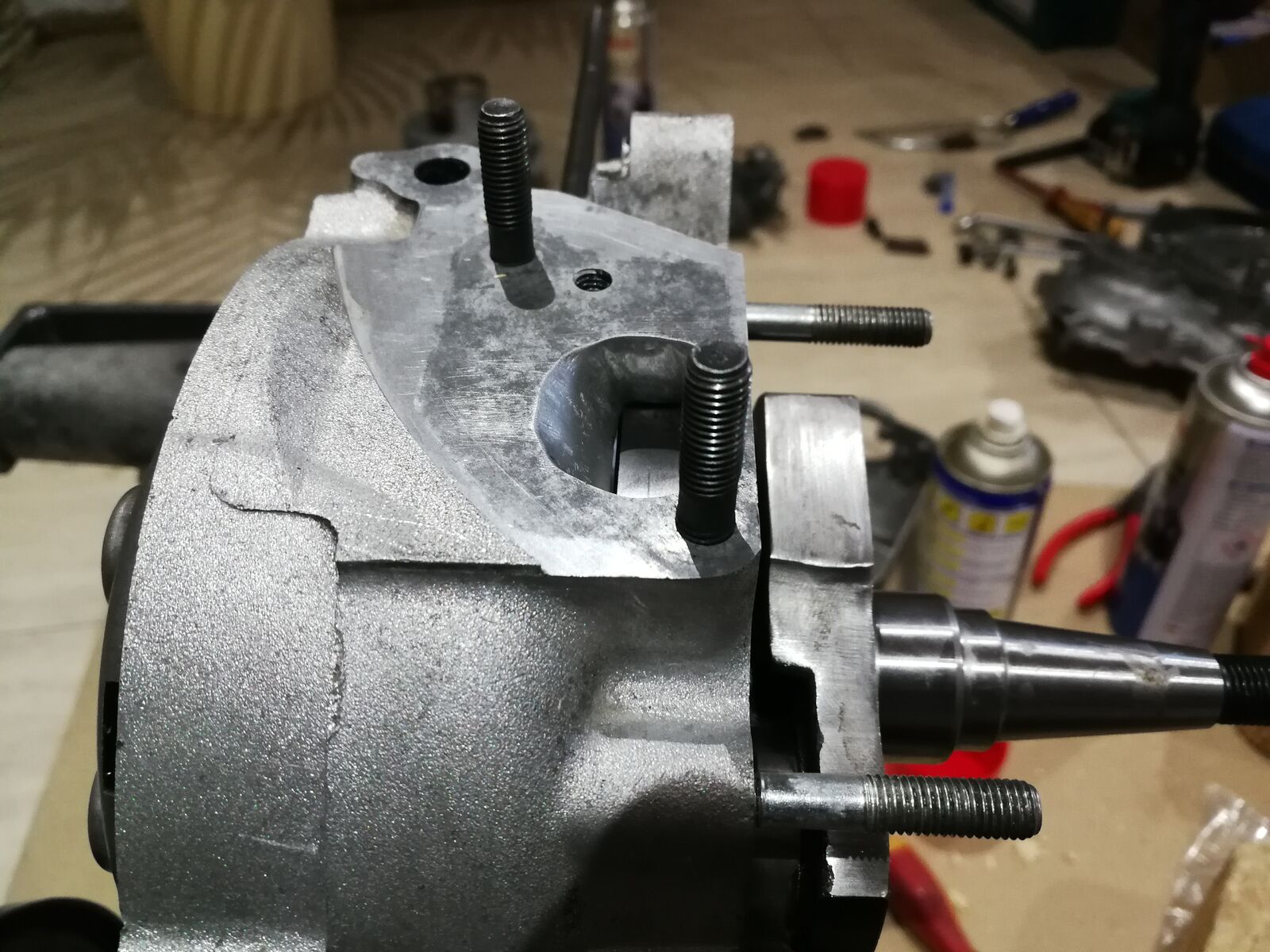 Kurbelwelleneinbau wollte ich auch ohne Risiko erledigen und habe die Variante über die Kupplung gewählt. Kurbelwelle reingeschoben und von hinten mit der originalen Kupplung langsam reingezogen bis es nicht mehr ging. Aber was war hier los?