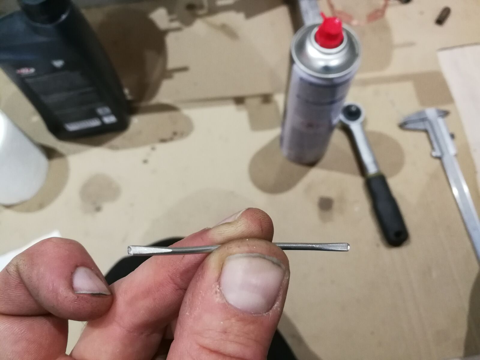 Ich hatte ja ein Revisionskit bestellt, da waren zwar Nadeln dabei, aber die geraden. Also hab ich mir da eine von genommen und sie am Bandschleifer am Rand jeweils ganz leicht angefast. Ich denke mal, eine modifizierte Nadel wird bei 20 Richtigen nicht ins Gewicht fallen.