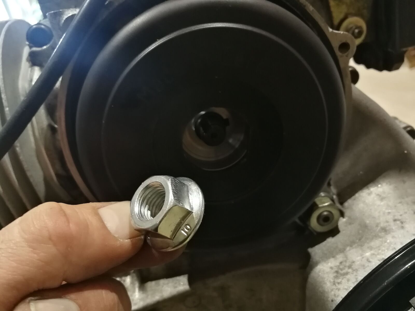Hab eben nochmal die Einbauanleitung runtergeladen. Also die Mutter muss ohne Sicherungsblech oder Scheibe verbaut werden und mit 70nm angezogen werden. Leider habe ich jetzt schon wieder Baustop. Hab gerade gesehen das meine Andruckplatte der alten Kupplung die runde Version ist ( 108er Kupplung ) , die BGM brauch aber die Andruckplatte der Cosa/ PX200 mit der angeschrägten Seite. Also eben schnell noch die richtige Platte samt Pilz und Draht bestellt. Aber das wird sicher erst Dienstag bis das alles kommt. Mist,wollte jetzt am Wochenende alles wieder einbauen und mal anwerfen...