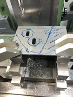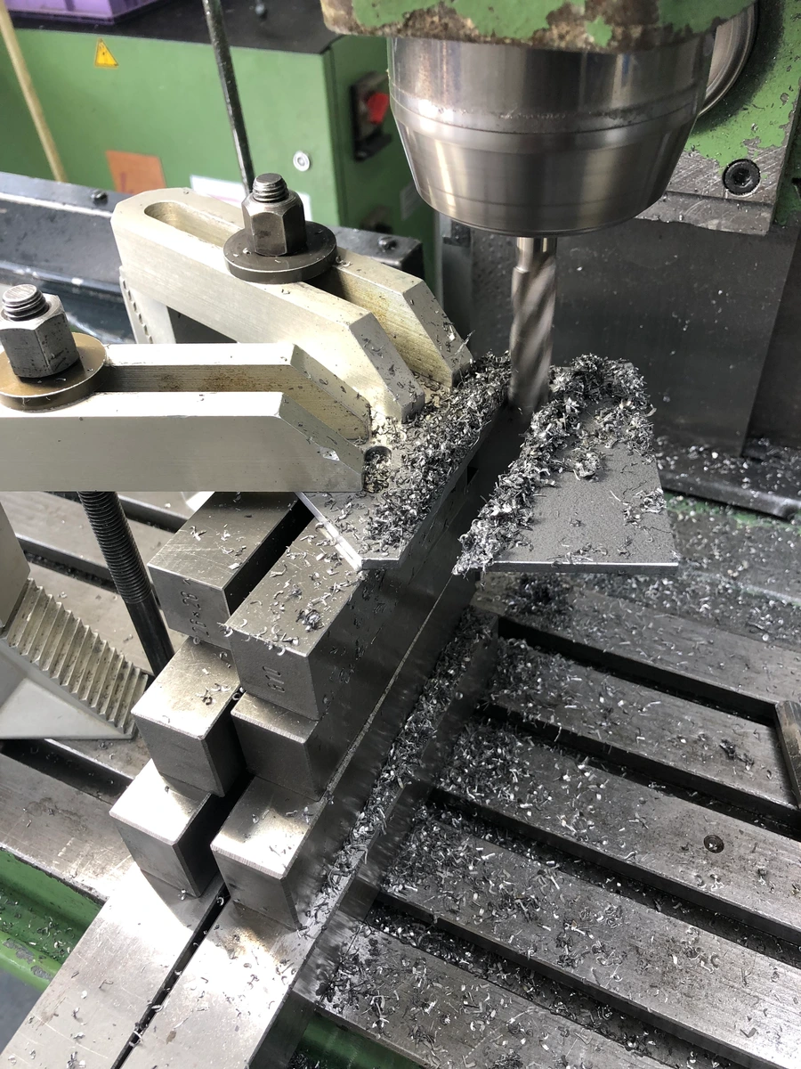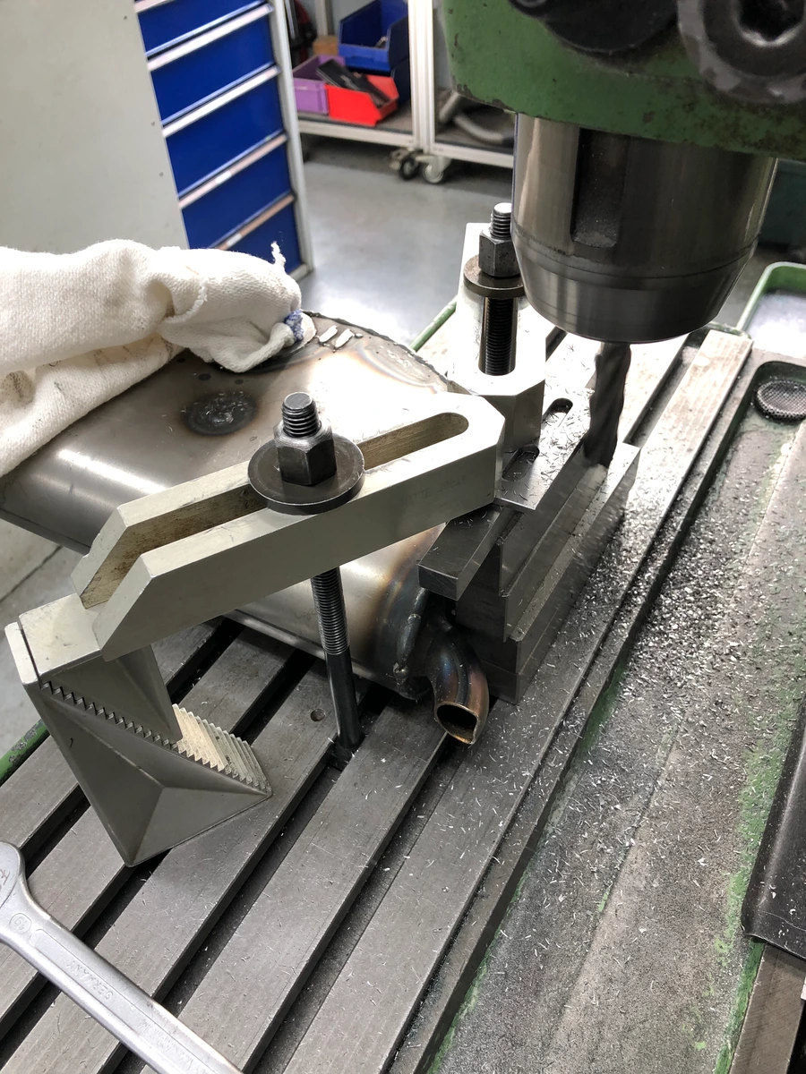 Dann auf der Fräsmaschine die Löcher auf genau 8 mm gesetzt in Stufen. Diese Bohrungen werden dann 8,5er Langlöcher wie in dem Schweißwinkel für den Briefkasten.