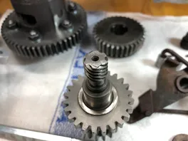 An dem anderen Stoßdämpfer habe ich dann das Gewinde messen können. M10x1,25. Dann mal nach dem Gewinde und Vespa gegoogelt und siehe da, unter anderem ist die Polradmutter bei den Scootern so. Das hatte ich noch eine von dem ganzen Zeug, das ich mal zum Basteln für die schwarze Automatik gekauft hatte.