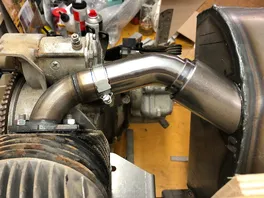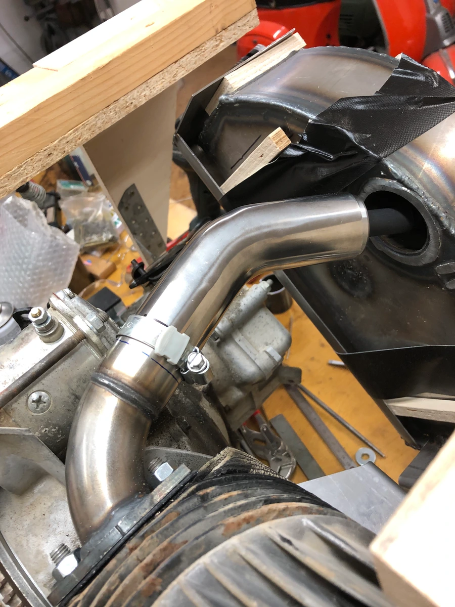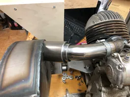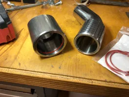 Dann die Anschlußmuffe fertig gedreht mit dem Konus, unter 30° überfräst und noch die Hülse für den Krümmer gedreht: