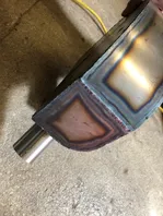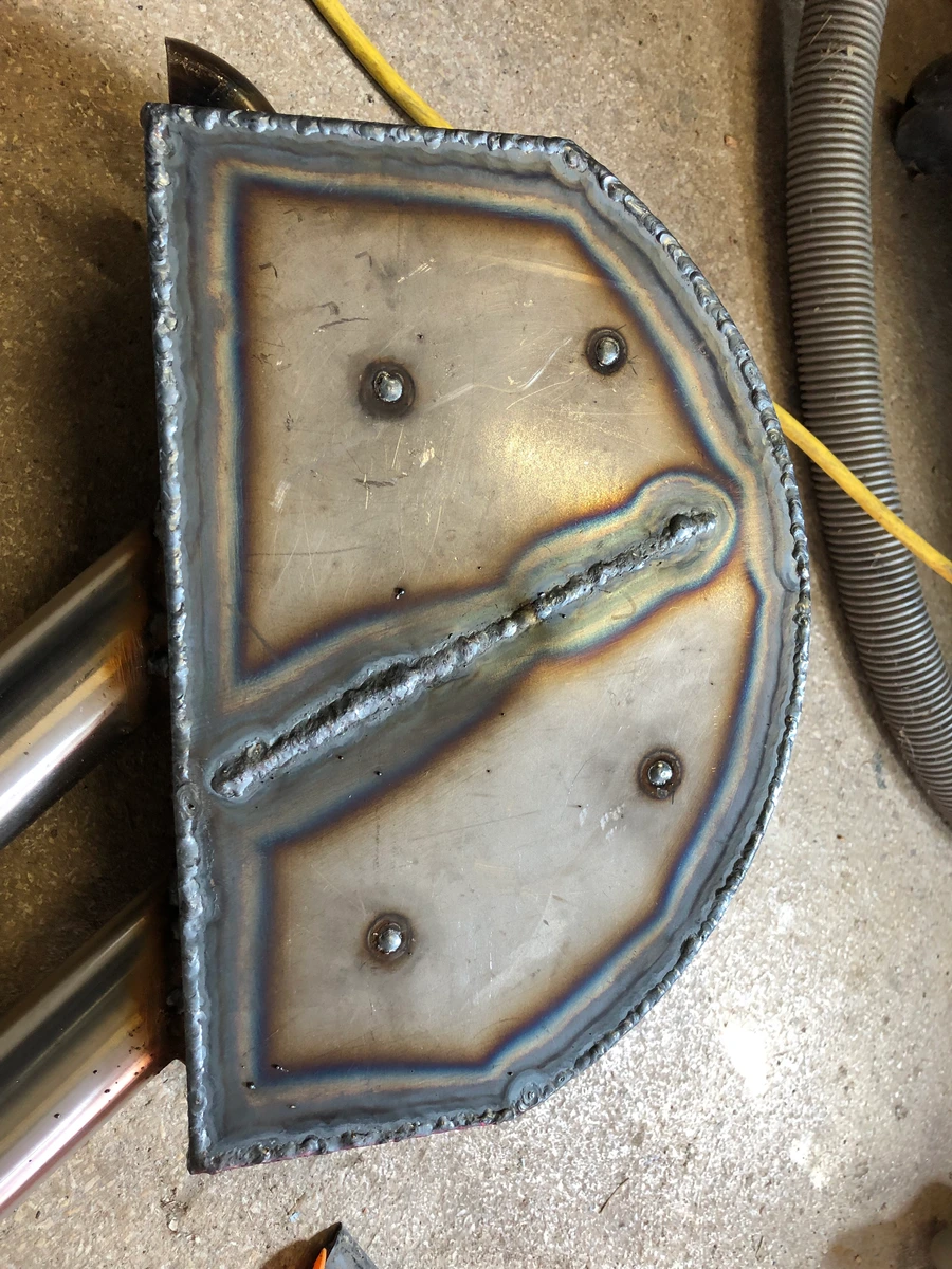 Dann das volle Debakel, die Innenhülle aus Teflon in meinem Schlauchpaket war im Eimer und in zwei Teilen. Ich mußte erst die Pistole zerlegen, um die zweite Hälfte wieder raus zu kriegen, hat mich eine Stunde gekostet. Zurückgerüstet auf Stahl-Innenhülle und den Deckel verschweißt, am Krümmer nochmal die Naht und dann kam WIG.