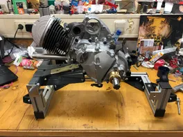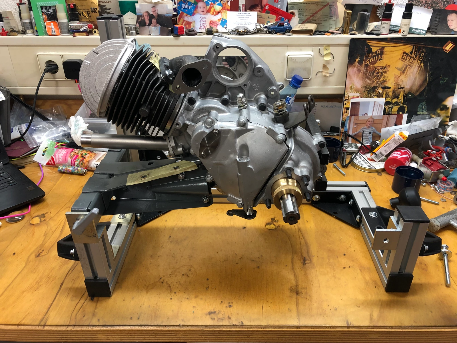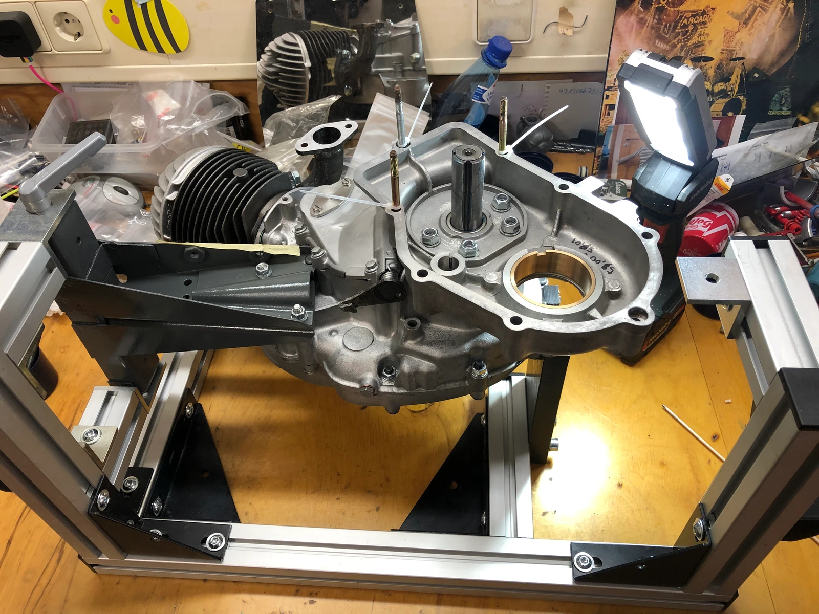 Ja gut, der Motor ist drin. Ich mußte aber den CDI-Halter wegschrauben, ich habe die Haube sonst nicht drauf gekriegt. Kann sein, daß ich den letzten Motor mit Haube montiert hatte.