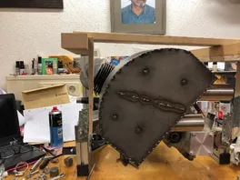 Vielleicht kann man jetzt auch erkennen, warum ich den Blechwinkel so dämlich angeschweißt habe. So wie er über steht, macht es jetzt nämlich Sinn und er schließt mit dem großen Blechbogen oben ab.