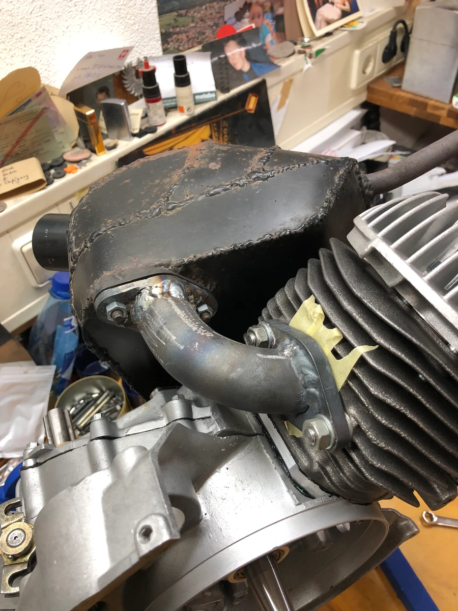 Der Auspuff war auch beschissen zu montieren, wie man sich denken kann. Überall hat es geklemmt und meine Tochter hat immer geholfen. Ich weiß gar nicht mehr, wie ich das vor 6 Jahren alleine gemacht hatte...